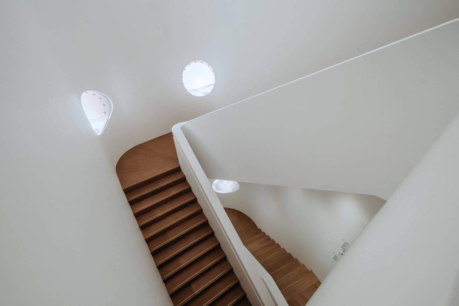 空间布局与客户体验的巧妙融合:佳士得亚太区新总部的空间设计展现出卓越的组织能力。设计师巧妙地将公共展示区(如艺廊、拍卖厅)与专属客户空间(休息区、私人观赏区)分层布局,并在不同楼层之间通过特色楼梯建立起流畅的连接,实现了功能与体验的完美平衡。这种布局不仅优化了客户的参观流线,也提升了他们在不同区域的互动体验。开放式办公区域的设计则体现了“One Team”的理念,通过“广场”的设置,促进员工间的交流与合作,进一步提升了整体的工作氛围和客户服务质量。