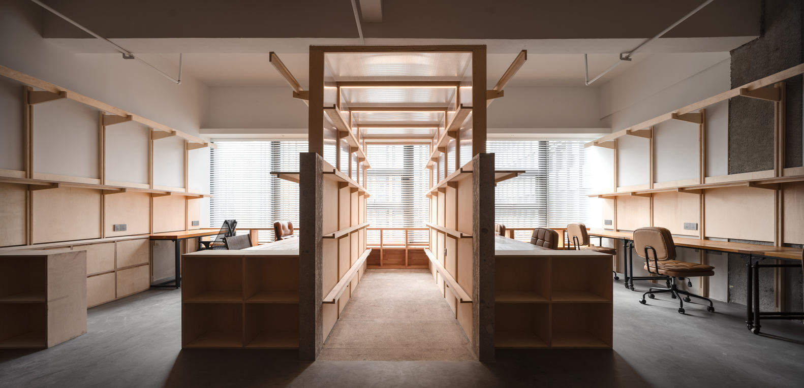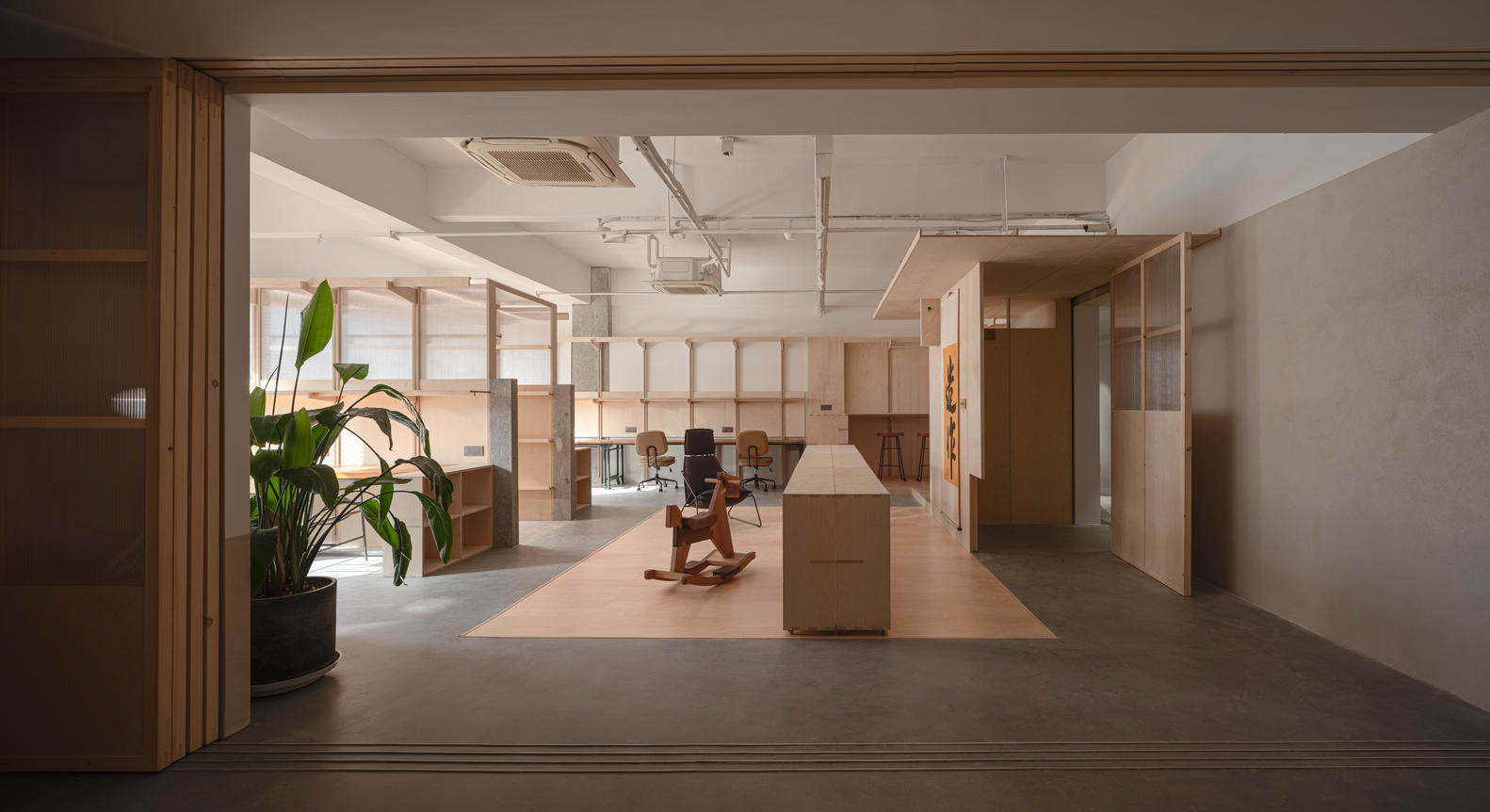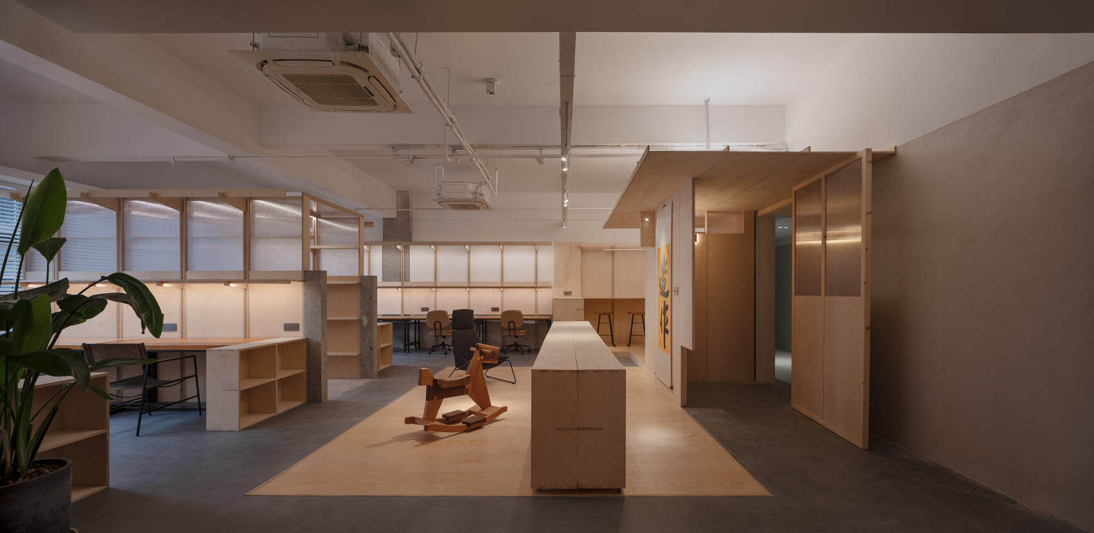 Our studio is a square box of around 100 square meters.. It is located in an ordinary office building in a very ordinary neighborhood, connected by ordinary corridors. The interior is well-organized and all corners are clear at a glance, except for a very small area where the ceiling pipe lowers the net height, making it the only "special scale" in the entire office.