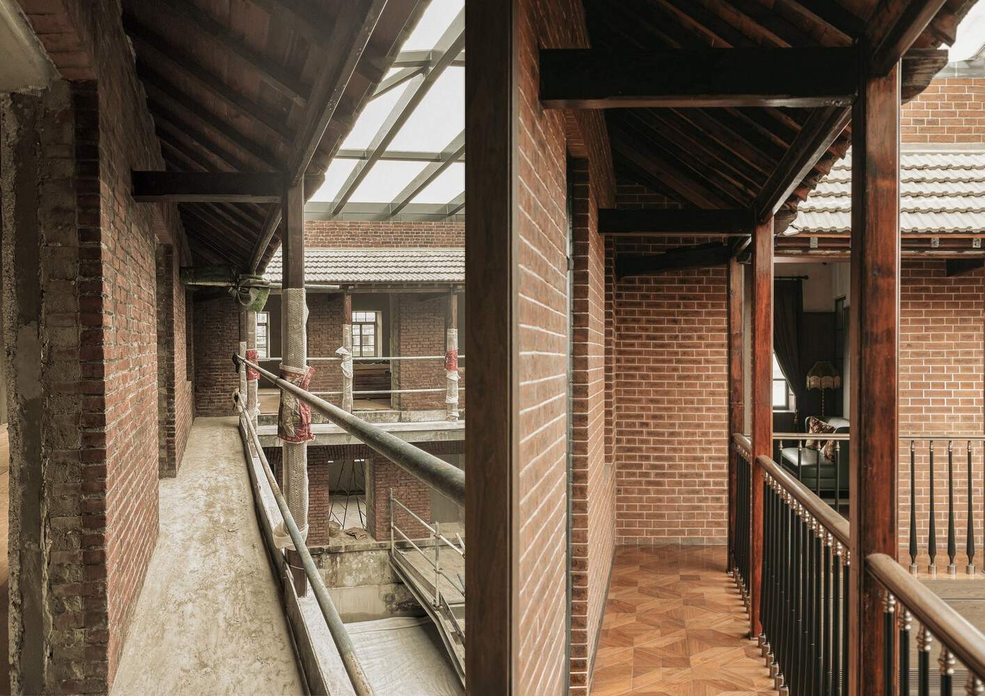 Due to the unique historical background of Dongguan Street, red bricks, European carvings, and retro doors and windows constitute its unique Japanese style European style architecture. The indoor space extends its retro tone, using mosaic wood flooring, retaining a series of retro window openings, wooden decorative wall skirts, and retro ceiling soft lighting to create an immersive atmosphere for the mansion, reproducing the former charm of Dongguan Street.