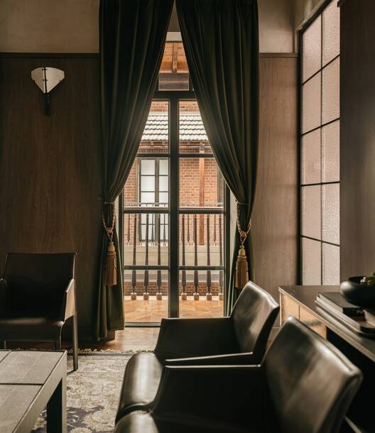 空间重塑与光线的运用:项目在空间重塑方面展现了极高的创造力。通过打通原本独立的空间,设计师巧妙地引入了自然光线,提升了空间的通透性和舒适度。一层幽暗沉浸的史馆空间与二层温馨亲和的公馆会客空间的对比,形成了一种独特的空间体验,增强了参观者的体验感。此外,设计师还充分利用了建筑原有的窗洞,将其转化为展示平台,不仅避免了对原有结构的破坏,还巧妙地将历史展示功能融入其中,增加了展览空间的节奏感和趣味性。这种对空间和光线的巧妙运用,是该项目的核心亮点之一。