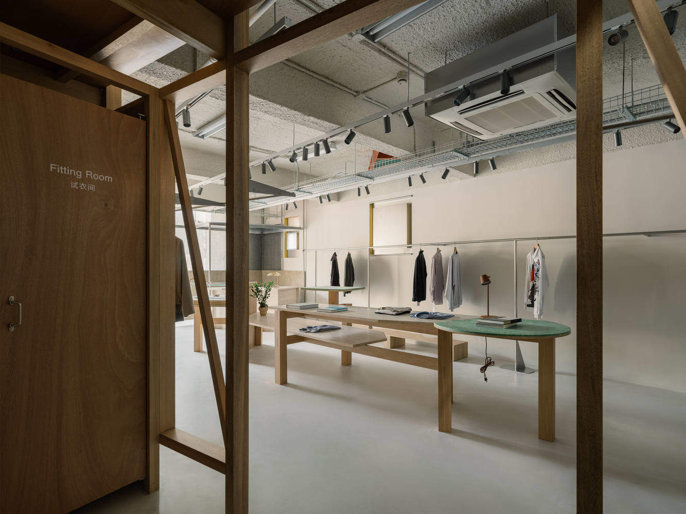 This is a design that pays tribute to disorder. A store in a community should not be a pure, awe inspiring gallery like space. We integrate multiple exhibition methods, making it look like a grocery store with a wide variety of products. Even if it is filled with clothes, it will not damage the space, but instead increase vitality and diversity.