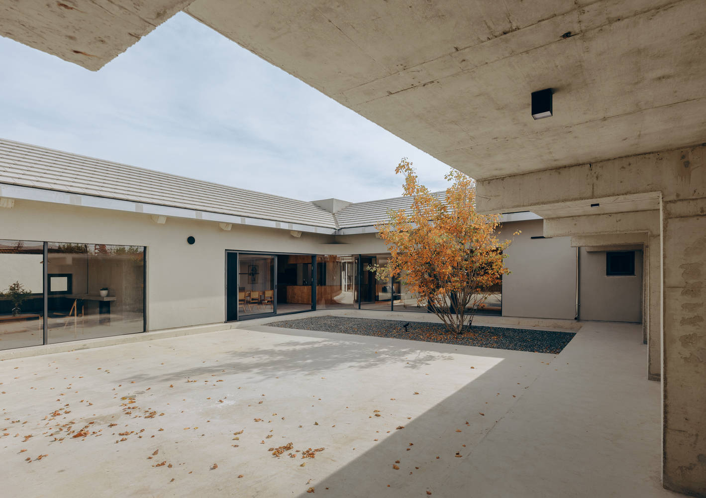 For a 700 square meter yard and due to limited budget, we expect to build a single story 300 square meter house. With fewer houses and larger courtyards, it will be a transformation and interpretation of traditional rural courtyards. First, connect the houses in different directions together. On the premise of maintaining the courtyard scale, the wing rooms are merged to one side, the depth increases and leaves the boundary, and another narrow and long courtyard flashes out on the side facing away from the courtyard. The main house on the north side moves south in the same way and flashes out of the backyard. Houses in different directions have dual sided lighting surfaces, giving the entire courtyard a penetrating view.