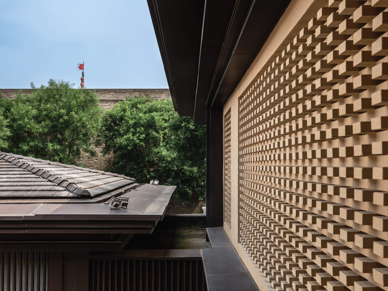 Design is like an immersive journey through time and space - guests transition from the bustling rhythm of Xi'an streets to a peaceful and textured sanctuary. The public area has been transformed into a cultural gallery, with handmade ceramics, calligraphy works, and seasonal gardens complementing each other. As sunlight flows, the traces of time quietly emerge. The guest rooms create a warm and intimate atmosphere through delicate materials and natural light. Green bricks and black tiles, silk and bamboo, carved beams and painted rafters - the perception fragments of walking in Chang'an, the source of inspiration, the proportion and texture condensed in the space, give the hotel a multi sensory experience that blurs the boundaries of the times.