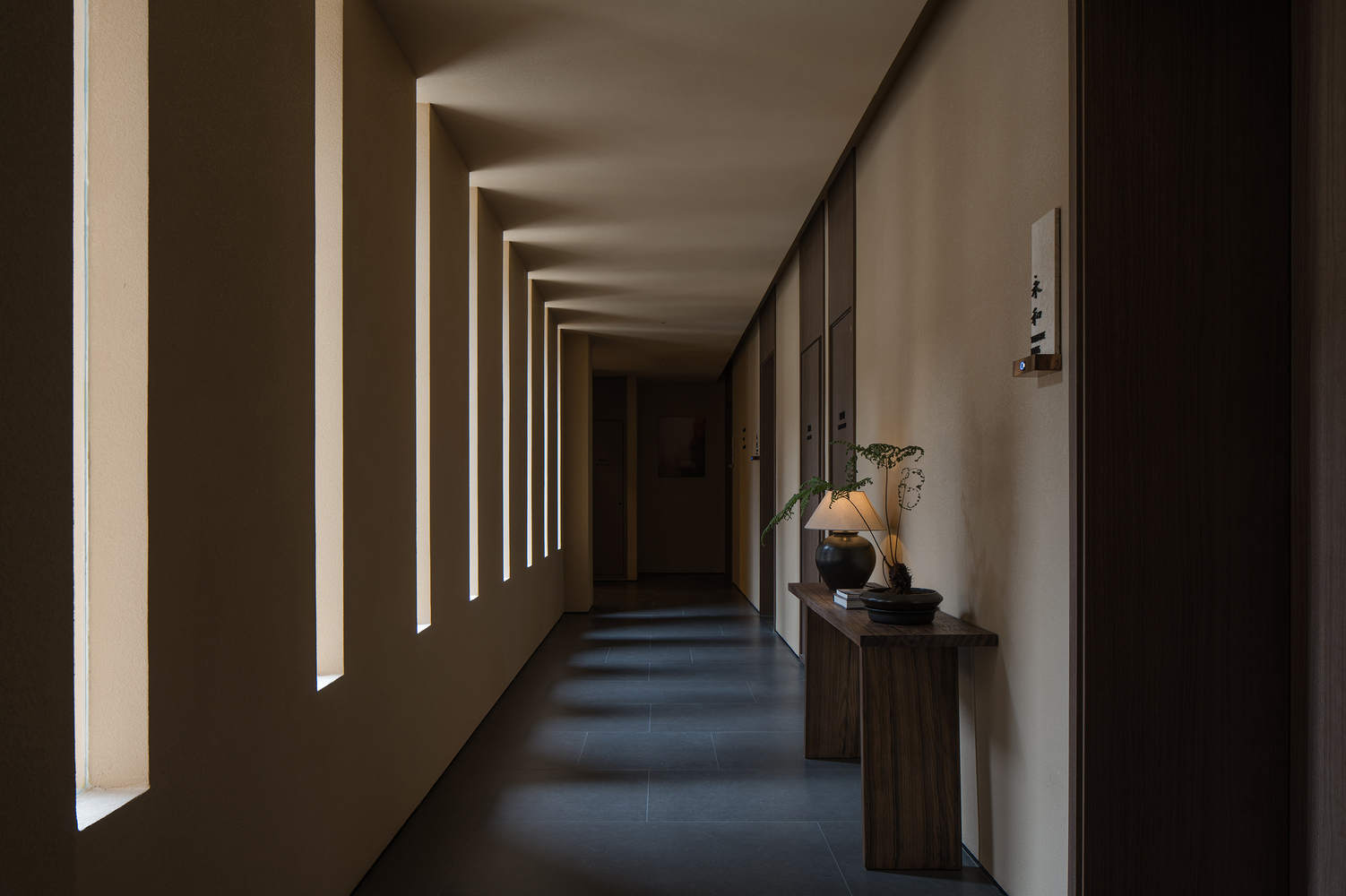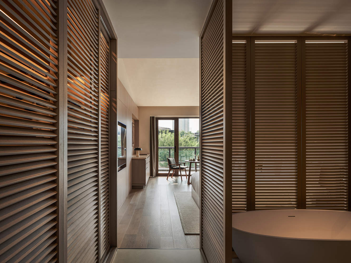 设计如同一场穿越时空的沉浸之旅——宾客从西安街头的繁华节奏过渡到宁静、富有质感的庇护所。公共区域被打造为一座文化画廊,手工陶瓷、书法作品、季节性庭园彼此映衬,日光流转间,时间的痕迹悄然浮现。客房则通过细腻的材质和自然光线,营造出温暖与亲密的氛围。青砖黛瓦、丝竹鼓瑟、雕梁画栋——漫步长安的感知碎片,化作灵感的源泉,凝聚于空间中的比例与肌理,赋予酒店一种模糊时代界限的多感官体验。