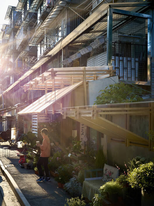空间与社区的互动:“笠檐”项目不仅仅是一个建筑设计,更是一次对城市微型公共空间的积极改造与利用。项目巧妙地利用了二楼阳台的结构,巧妙地避开了对原有建筑的过多干预。通过增加节点密度、突出杆件的层叠,营造出温暖、亲切的氛围,吸引了周围居民和行人的驻足。项目在改善街道环境品质的同时,也促进了社区的互动,体现了建筑师对城市肌理和社区文化的深刻理解。这种设计理念,为城市更新和街区活化提供了有益的参考,实现了建筑与社区的共生共荣。