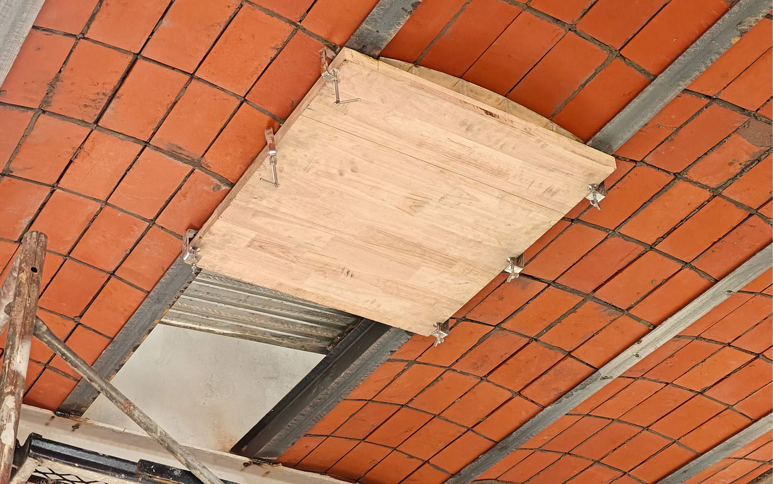Within these low-tech strategies, born from practical constraints, lay architect's habitual desire to embrace new challenges. Take the added meeting room floor slab, for example: we chose to construct it using a structural steel-ribbed brick vault (Catalan vault). Ten H-shaped steel beams (120x85mm), spaced 630mm apart, formed the skeleton, with red bricks laid in vaults between them, topped with a concrete infill. The history of brick vaulting is ancient, with a tradition in Northwest China of constructing "gu yao" (箍窑) vaulted cave dwellings using earth bricks. The entire new slab is supported by a large H-beam and a solid steel column (14cm diameter).