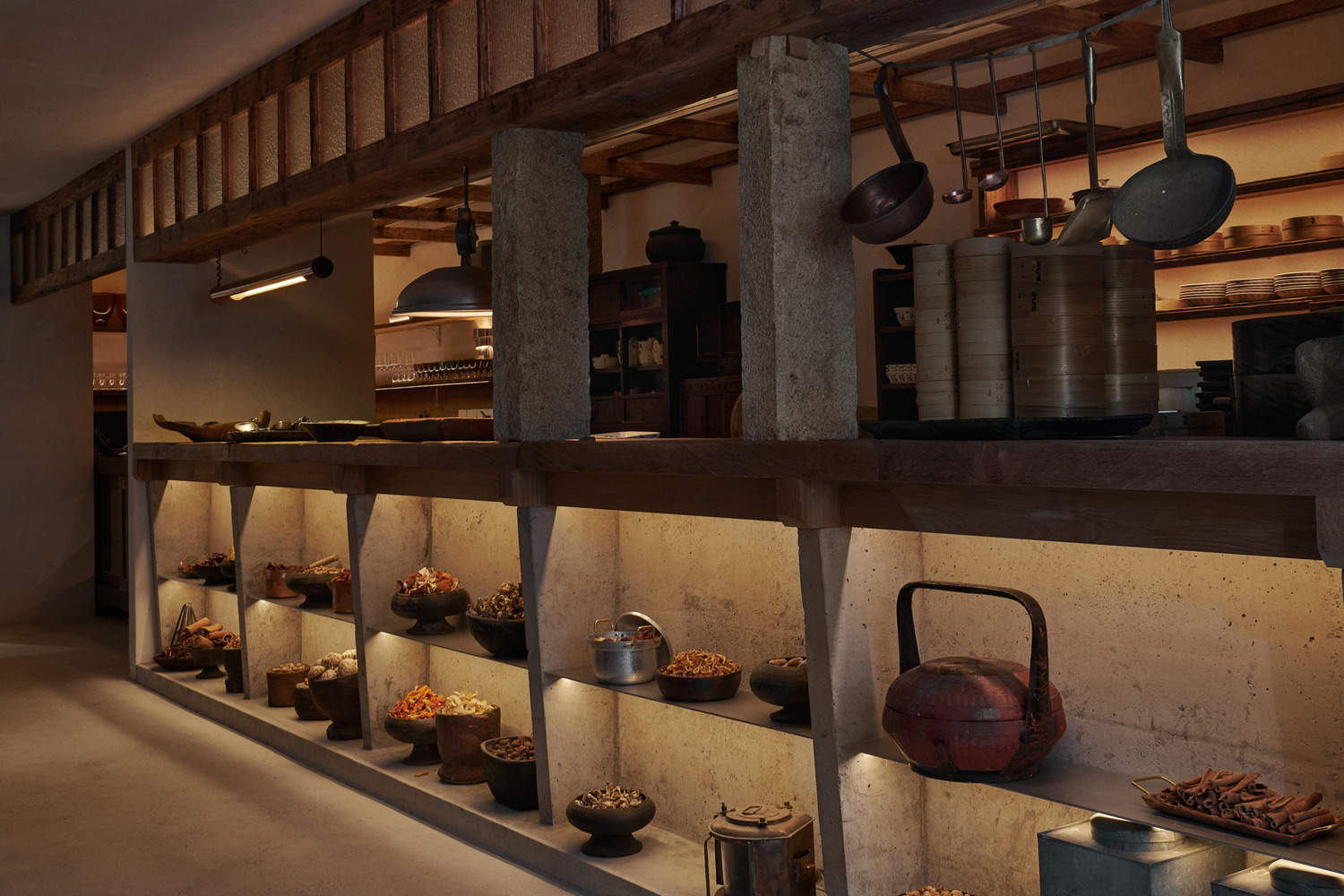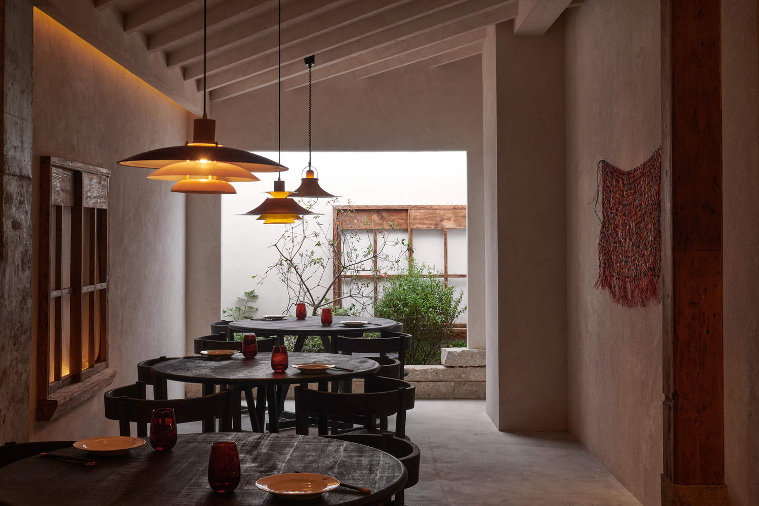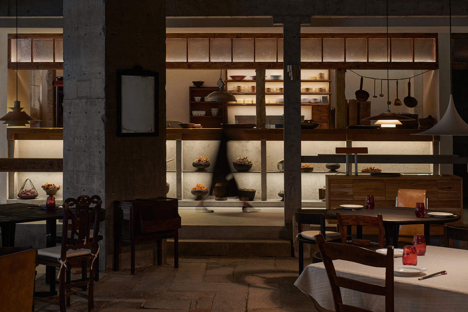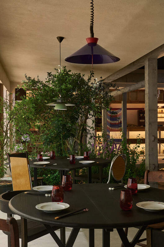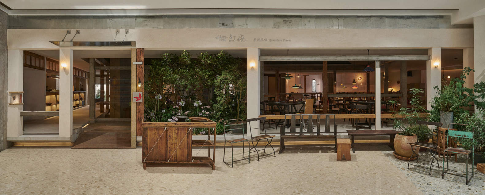 内部以微型庭院、开放式厨房与陈列架体构建多重场域,使餐饮行为融入一种更具日常性与展示性的空间逻辑。