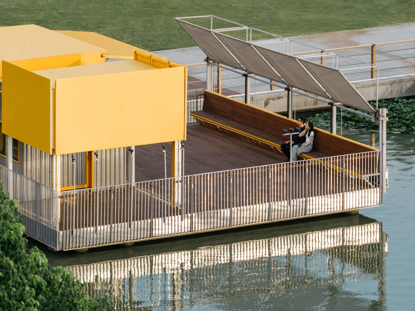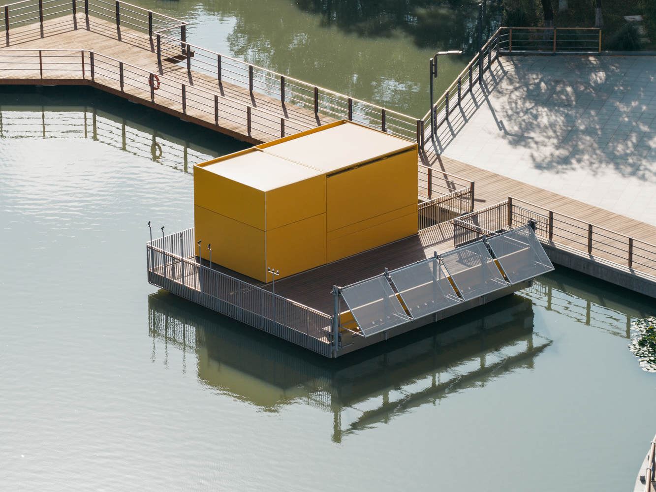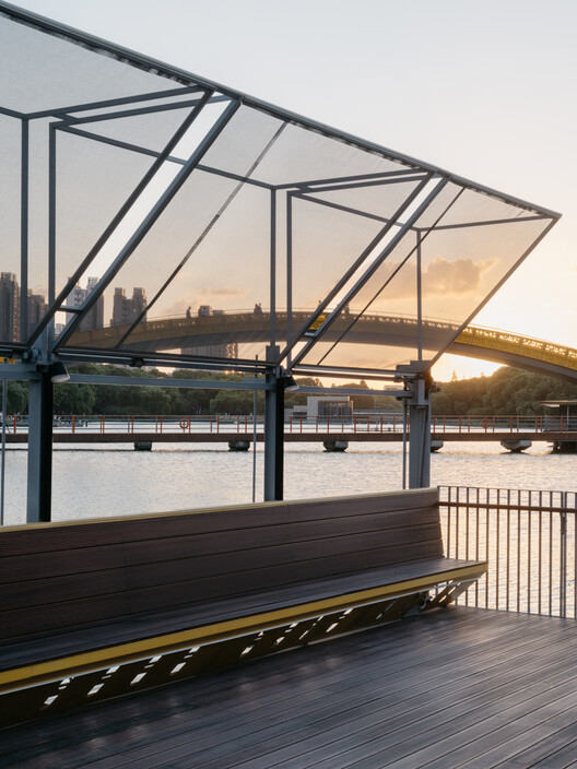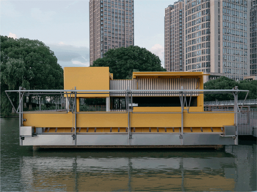 This project is located on a lakeside platform in Huaqiao Central Park, Kunshan, Jiangsu. The original site was an old sunshade pavilion. Despite its advantageous geographical location, it has been neglected for a long time due to its limited functionality. We hope to bring this space to life through a lightweight and flexible design intervention, making it a place where people are willing to stop.