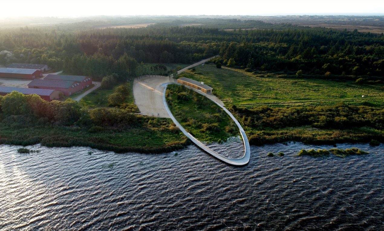 从桥上可以体验Filsø和广阔而宽敞的景观。在一次平移运动中,游客可以非常接近水面和该地区的独特性质。椭圆形突出了从到达到离开的连续运动。这座桥的设计有一个坚固的座位边缘,为游客提供了休息、坐下和欣赏风景的可能性。