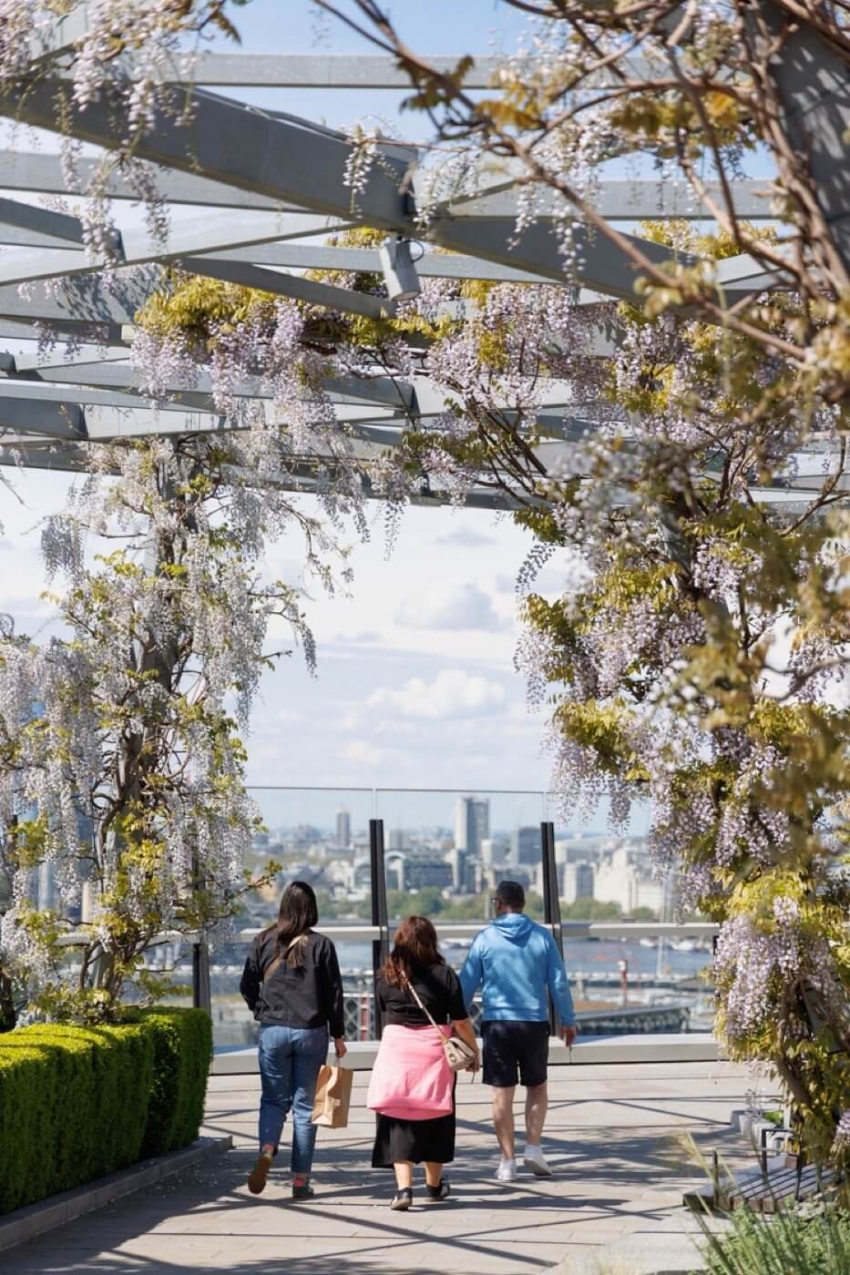 “120 号花园” 免费向公众开放,可完全进入。它位于街道上方 65 米处,可 360 度俯瞰伦敦天际线。最近,“120 号花园” 迎来了第一百万名游客,并在 2022 年荣获了久负盛名的英国景观行业协会(BALI)杰出园艺特别奖。