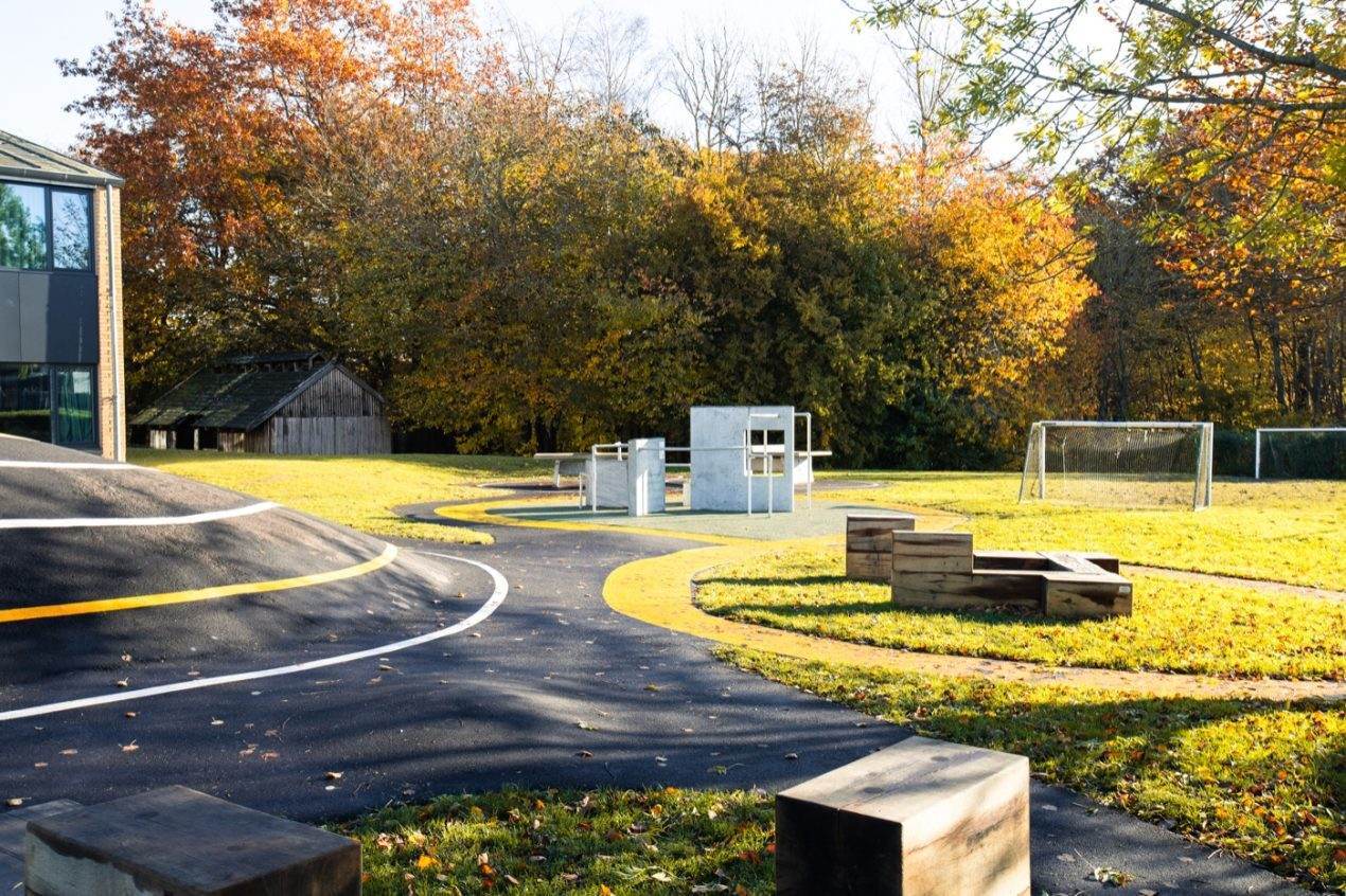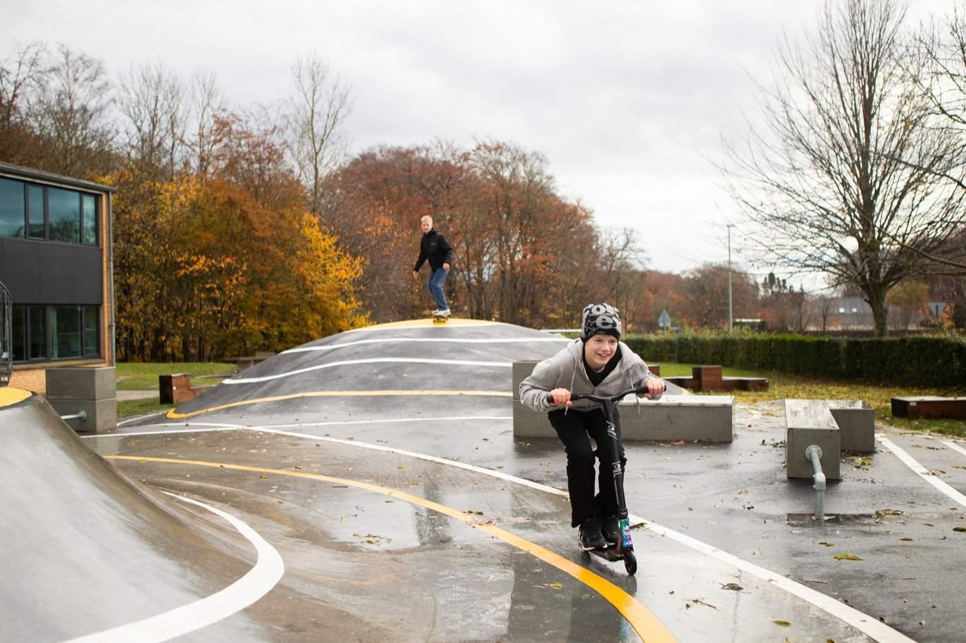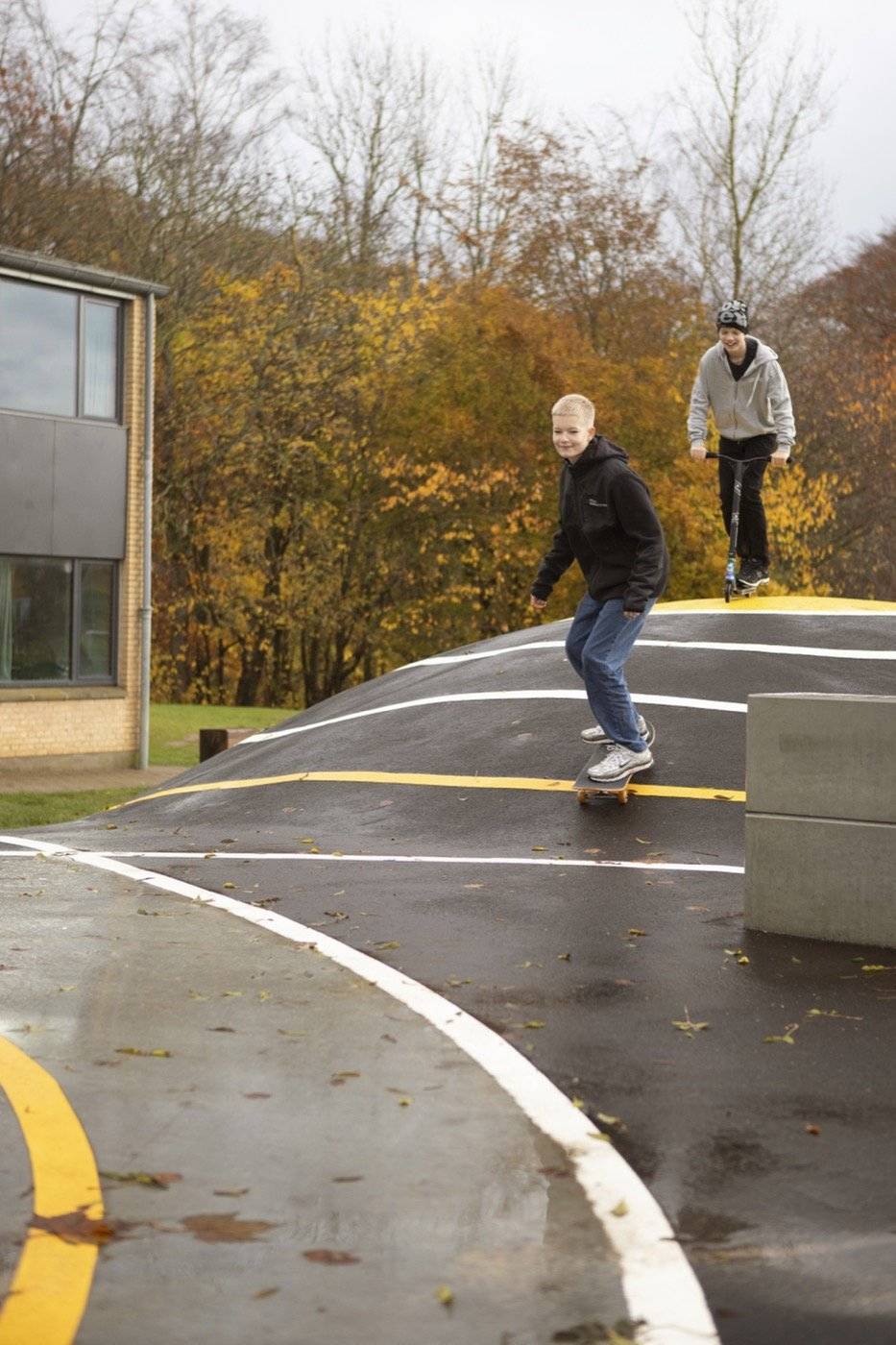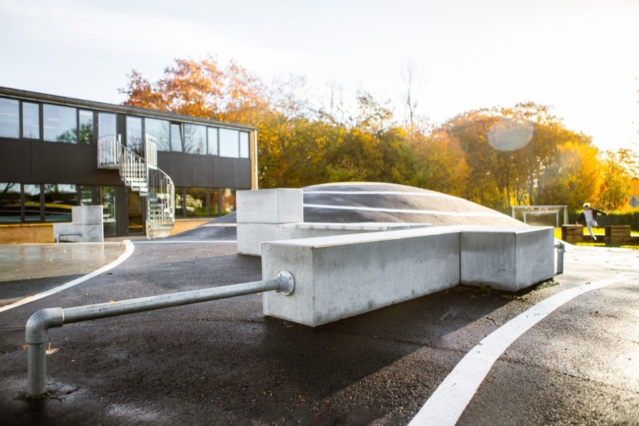LOOPS youth hang-out and skate area has been developed for the school youth club and oldest students, aged 13-15, at a public school north of Aarhus. The layout includes a large undulating surface with multiple uses, interconnected in infinity loops that incorporate parkour, basketball, table tennis, skateboarding, and seating areas for small groups. This design makes it pleasant and welcoming for students to sit alone or in groups.