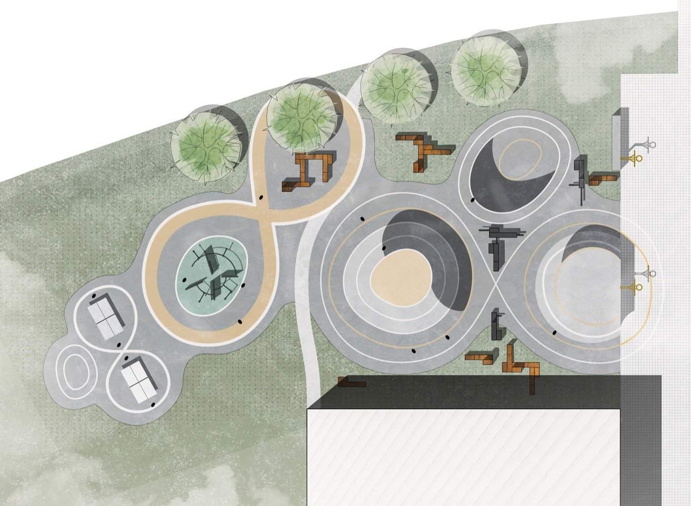 LOOPS——强度变化:这个项目为公立学校的学生打造了一个极具创意和功能性的青年休闲和滑冰区。起伏的表面设计连接多种用途,满足了不同活动需求,定制家具更是支持了性别平等和轻松使用。通过与学生、教育工作者等举办研讨会,确保设计能吸引和激励年轻人,让他们以不同方式参与活动。该项目不仅促进了体育活动和社交互动,还培养了学生的好奇心,创造出让他们有归属感的空间。