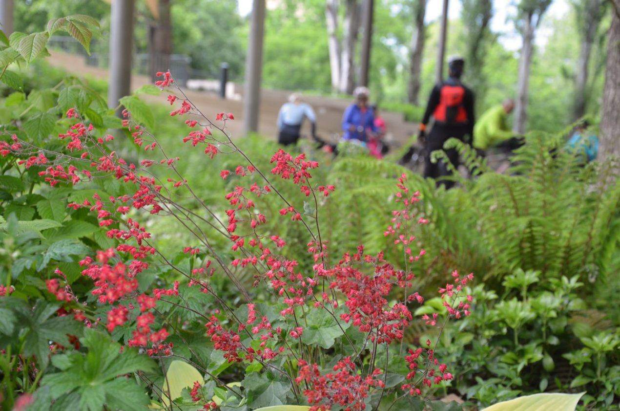 生态考虑被放在首位,努力确保排水过程中现场吸收降水。在选择物种时,主要考虑建筑物及其周围环境的小气候条件,也避免使用草坪,而是推荐耐荫草替代植物。考虑到公园的收藏花园特征,在引入高观赏价值品种的同时,最大限度地利用当地物种也很重要。