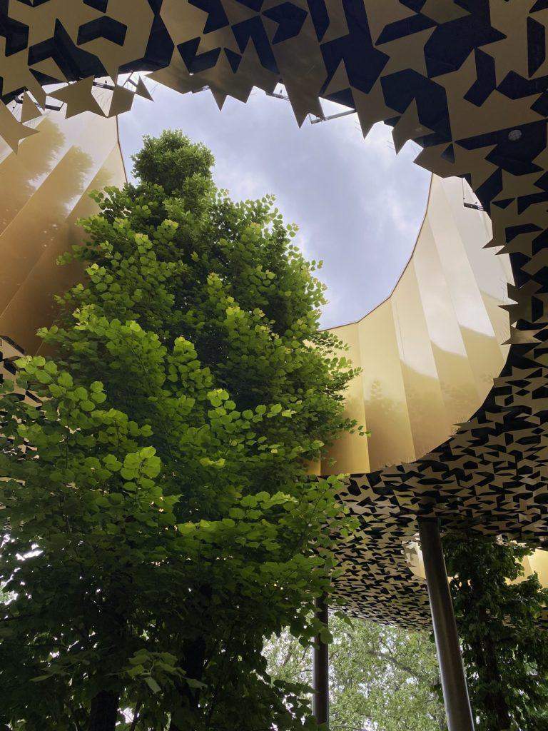 Embracing its pivotal role, concentric circles radiating from the building’s center mimic sound waves . This motif shapes both interior and exterior spaces, the built environment melds with the park through the integrating garden’s structure and plant usage.