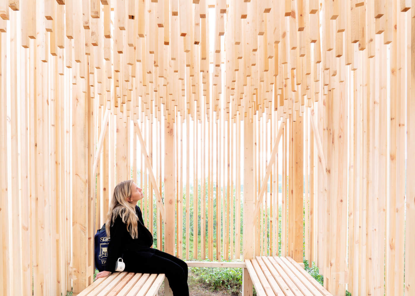 历史与现实的连接:20 世纪初瑞典的水电开发对周围环境产生了重大影响,Vattenfall 的建设带来了摩擦,至今仍有痕迹。展馆的设计重现瀑布回声,连接了过去与现在。它先在山上矗立,后在吕勒奥双年展展出,在不同环境中重申其结构意义。同时也让人们思考水在不同场景下的意义,从能源角度看待瑞典向无碳生产过渡的关键,具有深刻的现实价值。