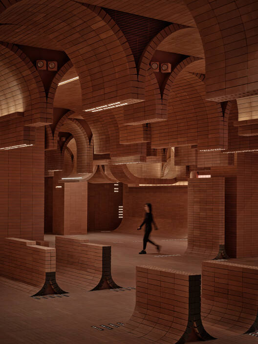 Haikou is an island in China, it's situated on the north coast of Hainan Island, and the South China Sea is around the island. We wanted to create something related to the ocean because Haikou is surrounded by the ocean, but we wanted to create something unique and we didn't want to use the color blue like the ocean, so we decided to use the brick material for the theme of our design. Because bricks are made of sand which lay on the beach. Looking at this, you can perfectly build a story in your mind. This is timeless, just as bricks can be used to create beautiful and durable spaces that can't be worn down and improved as they blow out their birthday cake.