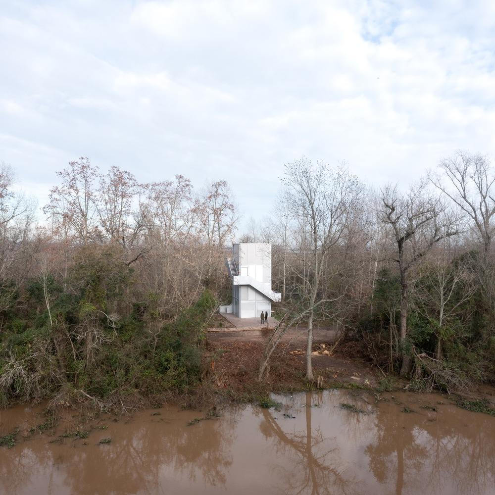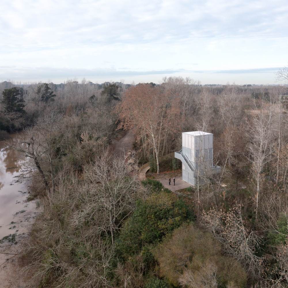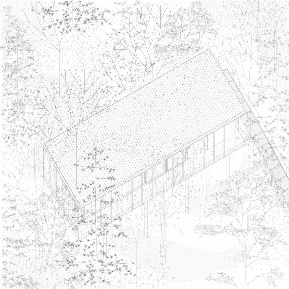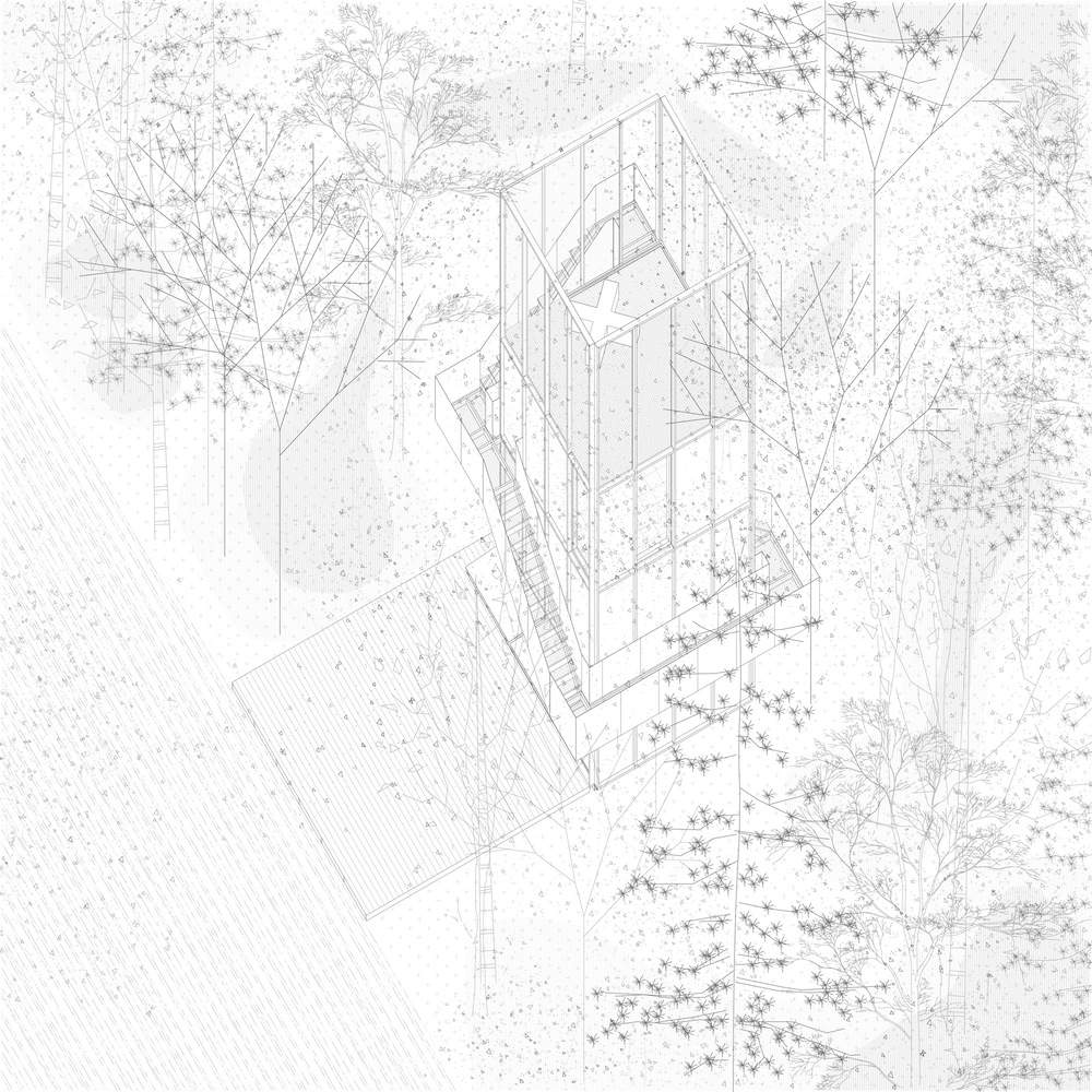 Vertical Folly. This structure is conceived as a multi-programmatic and spatially compact device. Located near the entrance to the reserve, amidst dense vegetation, it aims to rise in height to offer a new perspective of its context.