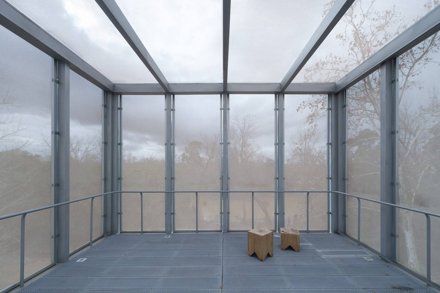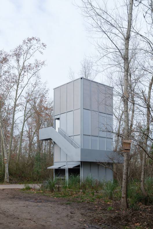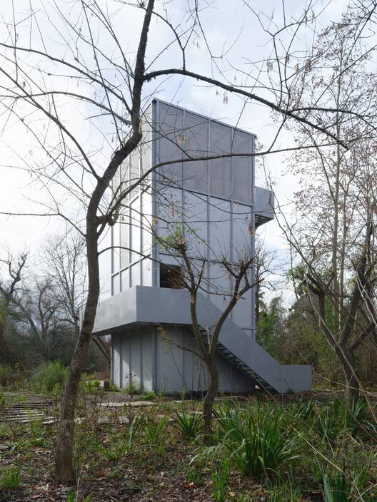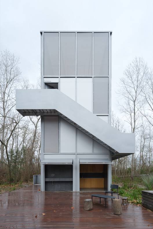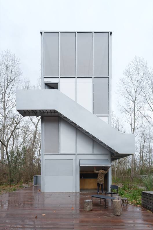 Text description provided by the architects. The proposal originates from the commission for a more extensive series within the Puertos Escobar reserve, a vast anthropic-natural territory along the Correntino Stream. It is envisioned as an architectural intervention that deeply engages with this environment. The project consists of two structures positioned along the main road of the reserve. Each explores a specific spatial and relational condition concerning our interaction with the ecosystem.