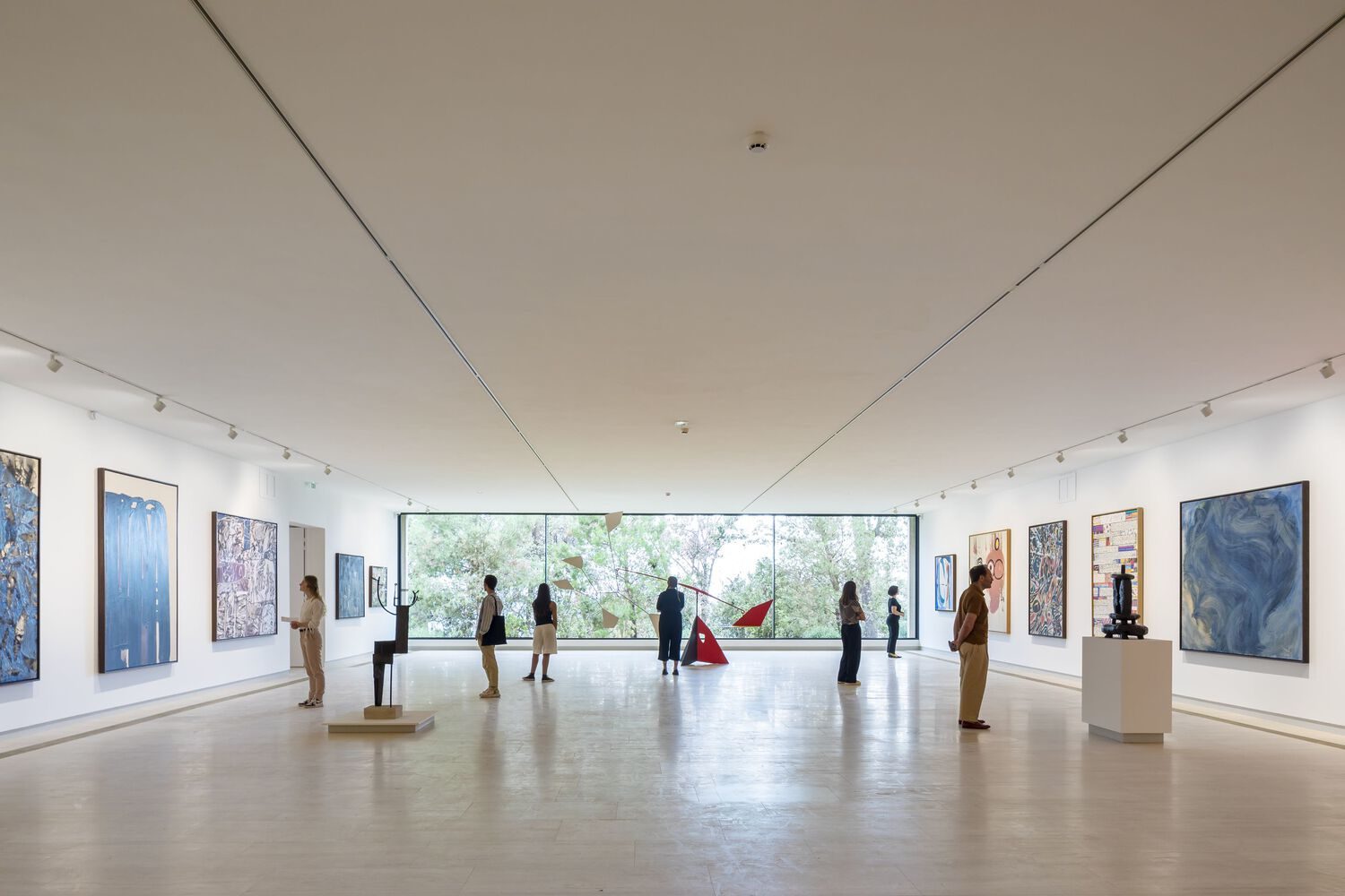 Under the Miró Courtyard - restored to its original open courtyard form - there is a smaller room of 66 m² (6.6 m wide by 10 m long). These new exhibition rooms open towards the pine forest through their large extended glass windows, allowing natural light to penetrate underground. Framing of the surrounding landscape punctuates the visitor experience and encourages them to continue towards the outdoor pathway of the Miró Labyrinth. The extension, visible only from the "walkway," perfectly respects Sert's innovative architecture and offers a new "Promenade": from the exit through the small room to the Giacometti Courtyard, passing through the Miró Courtyard whose large stained glass window created by the artist is restored for the occasion thanks to the Friends of the Foundation. The project thus follows the relationship between art and nature, between solids and voids, in harmonious dialogue between the building, the artworks, and the landscape.