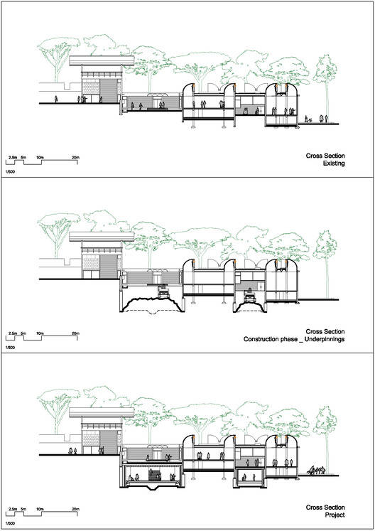 Maeght基金会的扩建项目尊重Josep Lluís Sert的原始建筑、结构和精神,扩大了展览空间,从而继续确保具有国际共鸣的独特节目。这些新空间是在地下挖掘的,通过建筑后面的大窗户向山谷开放。Maeght基金会的扩建项目将展览空间扩大了580平方米,尊重了Josep Lluís的原始建筑。Sert。乍一看,这是一种几乎看不见的干预,当游客在旅途中前进时,它就会显现出来。它由两个新的主体量和两个画廊组成,坐落在基础现有楼层的一部分下方,插入现有建筑石基的厚度中。大厅建在贾科梅蒂庭院下,提供390平方米(13.5米宽,29米长)的空间,没有任何可见的结构。这种布局旨在为临时展览、永久收藏展示、音乐会、放映或舞蹈表演提供极大的灵活性。这两个空间通过一个44平方米的画廊与大厅相连,画廊专门展示基金会及其建筑的历史(模型、原始施工图等)。