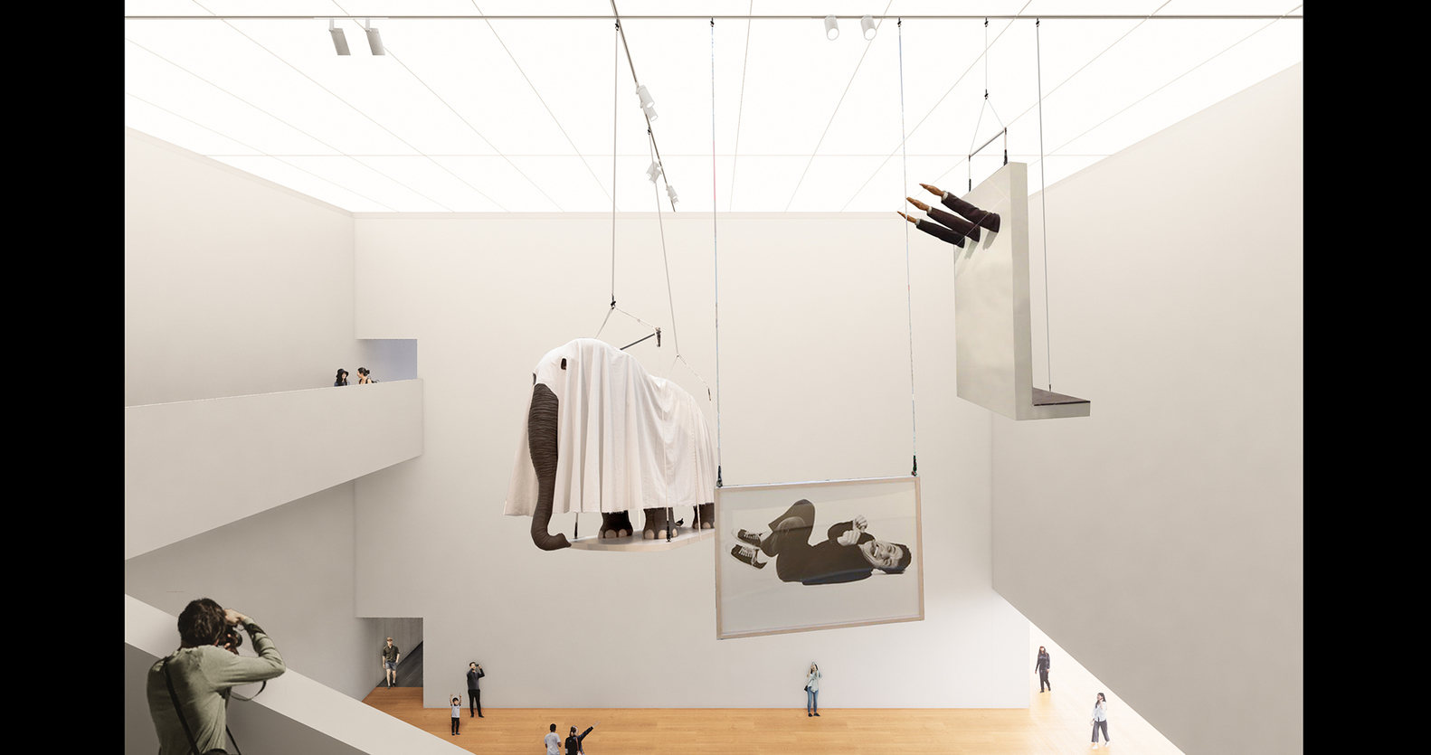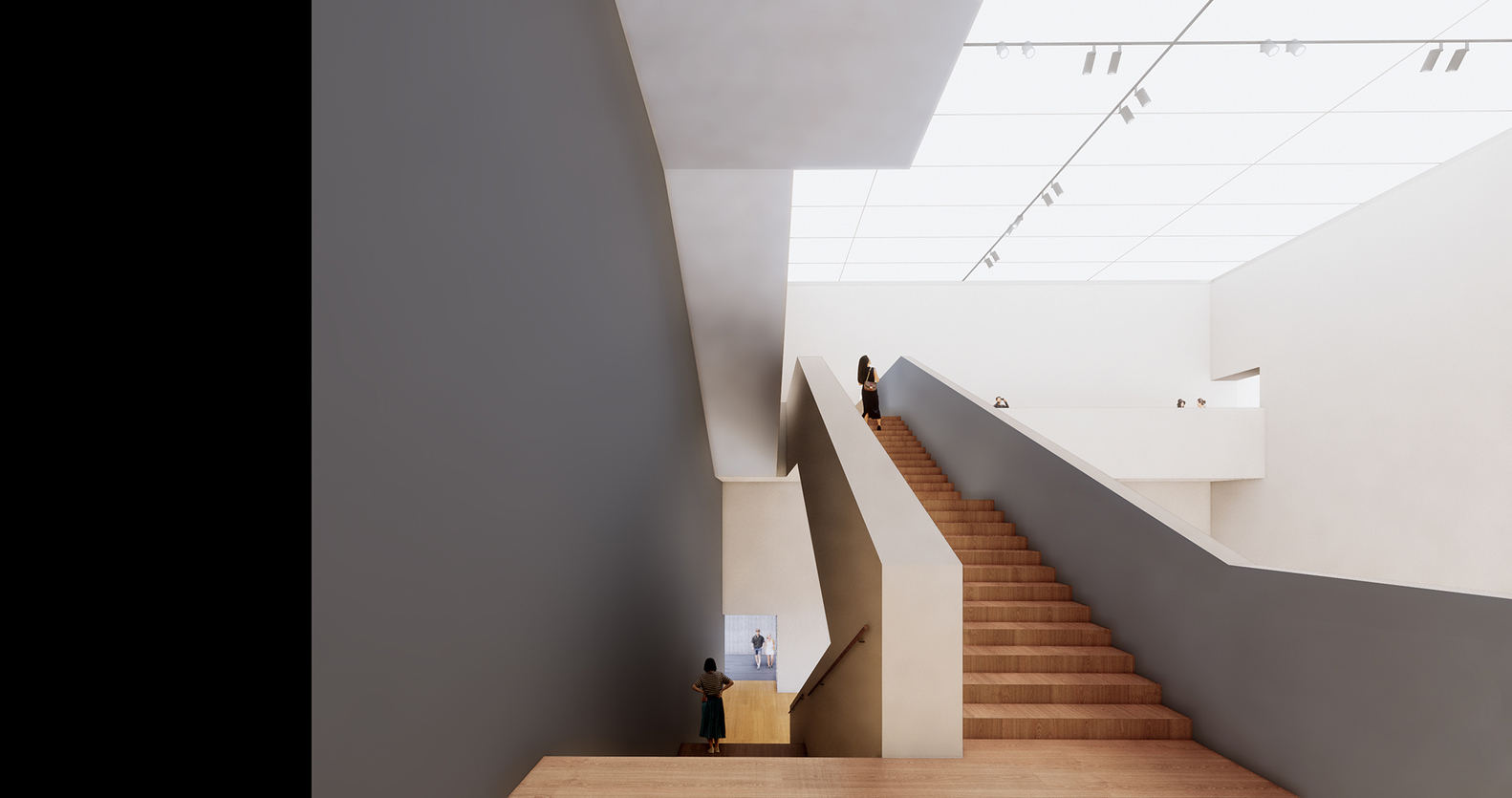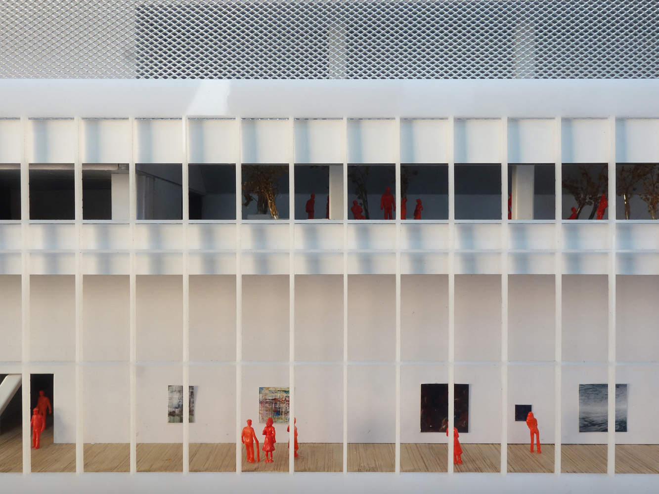 The other existing cinema halls were transformed into distinctive art "vessels" for diverse experiences. The White Box serves as a contemporary gallery, while the Wood Box functions as both an exhibition and performance space. The Long Gallery, formerly the egress corridor 100 meter long and 7 meter high, was transformed into a linear exhibition space that interacts with the city through its floor-to-ceiling glass facade. The Screening Room is a multifunctional black box theater with dual projection screens. One projection is for internal use, while the other reveals its content to the city through a semi-transparent screen, connecting indoor events to the urban environment and activating the surrounding public space.