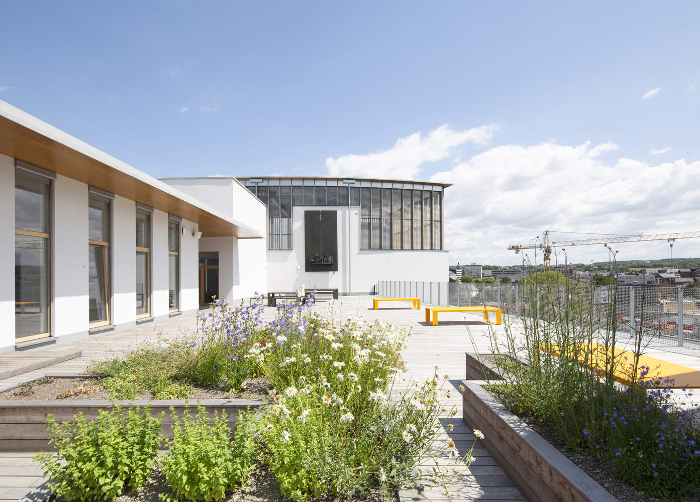 Natural ventilation and acoustics - Although the reliance on natural ventilation and lighting is perfectly possible in a favorable urban environment, the environmental conditions within towns (odors, noise, dust, dirt on floors and walls, overheating, shading) have gradually and very visibly deteriorated. Buildings have increasingly been constructed so to protect them from this hostile environment, becoming "boxes" sealed off from these physical attacks and, as a result, closed off from their surroundings. The center of Namur, which is well-ventilated due to its topography and rivers, is fortunate in that it does not suffer from these disadvantages. It is thus possible to return to more sensible practices and to open up the building to its environment. Since they are sheltered from sources of noise, the main 450-seater theatre roof lights, necessary for both smoke exhaust and natural daylight, can also be used for natural ventilation, along with opening windows.