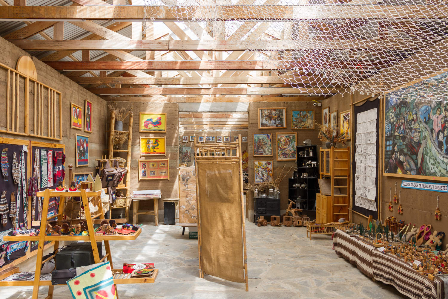 The museum's collection is mainly composed of the legacy of the extinct Yatiyawi Foundation, an organization that worked since the 1990s in Tilata, producing educational material for both children and adults. “Yatiyawi” means ‘Teaching’ in the indigenous Aymara language spoken in the region. Each space has its own characteristics in terms of textures and colors, a common factor being the use of earth.