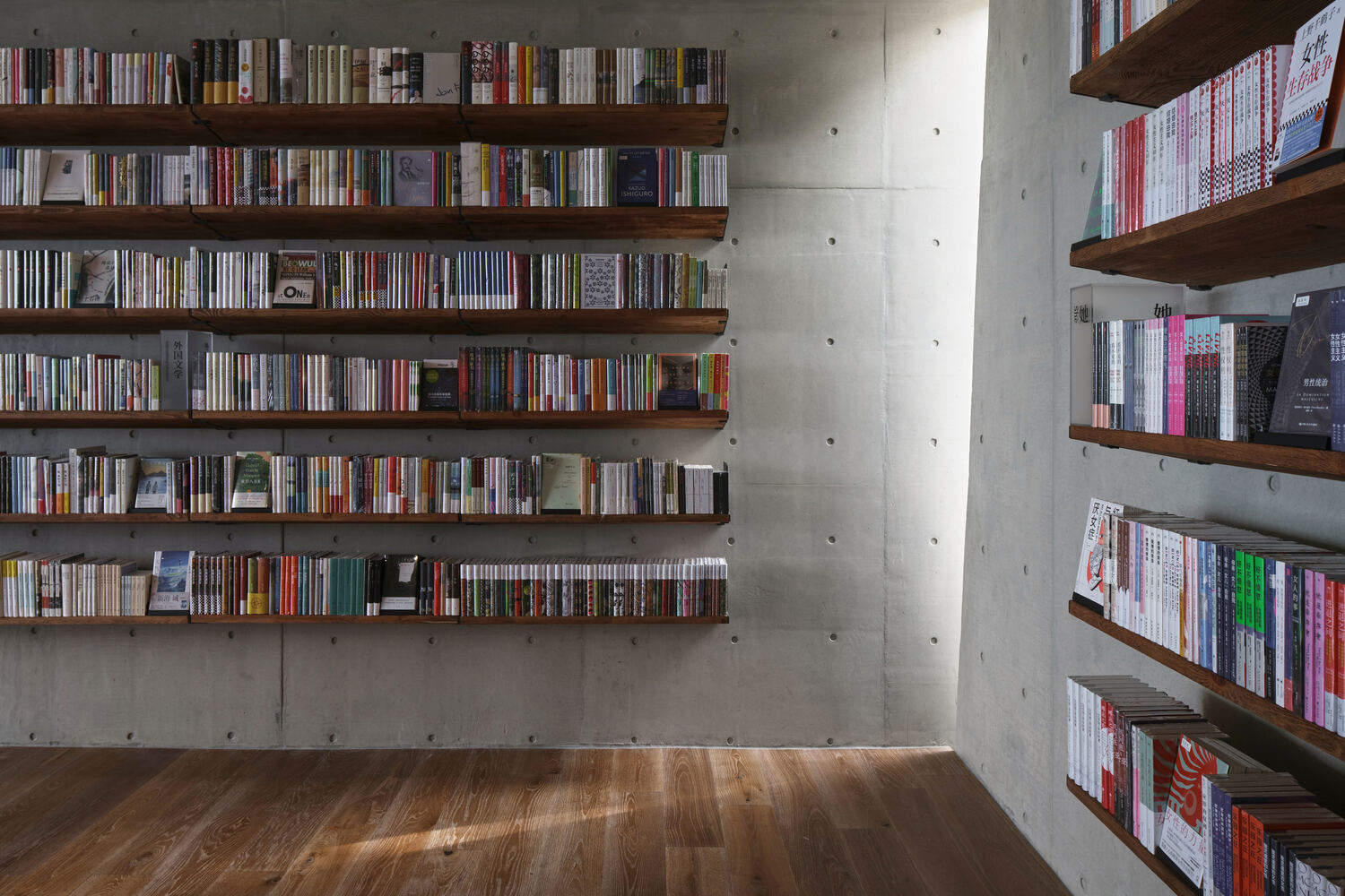 The unique site conditions shaped the architect's initial vision of a forward-stretching volume. The steep slope and towering mountains, combined with the protrusive structure, transformed the bookstore into a suspended platform. Readers within the space are surrounded by canyon views from the north, east, and south, creating a sense of walking among the clouds.