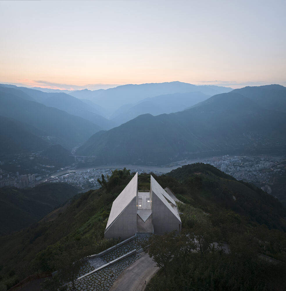 建筑师提供的文字描述Text description provided by the architects. As the last free-flowing river in China without dams, the Nujiang River winds through the folds of the Hengduan~ Mountains in western Yunnan, separating the Gaoligong Mountains and Biluo Snow Mountain to its east and west. The Nujiang Grand Canyon Bookstore of Librairie Avant-Garde is situated atop the Gaoligong Mountains, facing across the river toward the two sacred mountains of the Lisu and Bai ethnic groups.