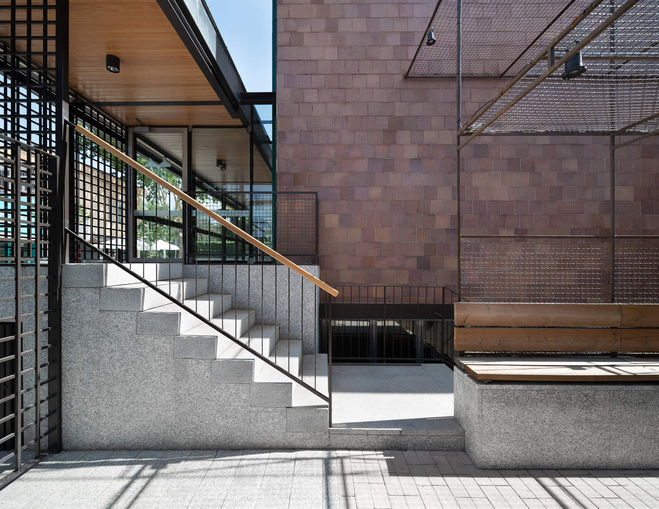 室外露台通过创建凉棚扩展空间进行调节和恢复,以发展儿童的户外活动,可直接从儿童图书馆进入;建造一个英式露台,作为通往半地下室的新通道。