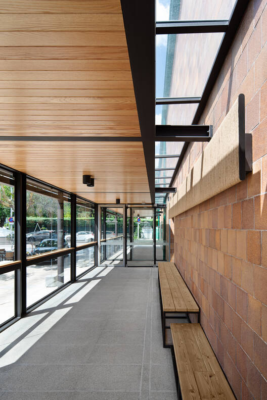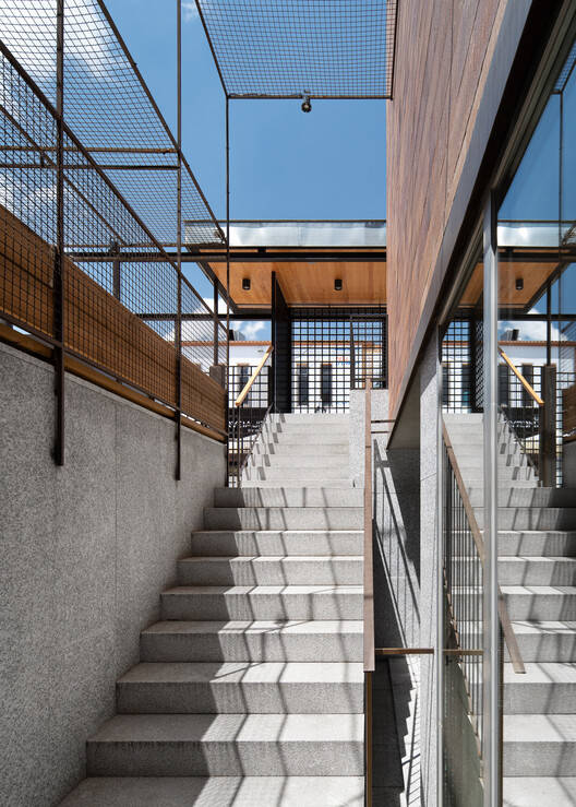 部分利用建筑外周现有凉棚结构的支撑,创建了一个玻璃画廊,作为图书馆的入口或走廊,也作为图书馆与外部空间之间的过滤器。