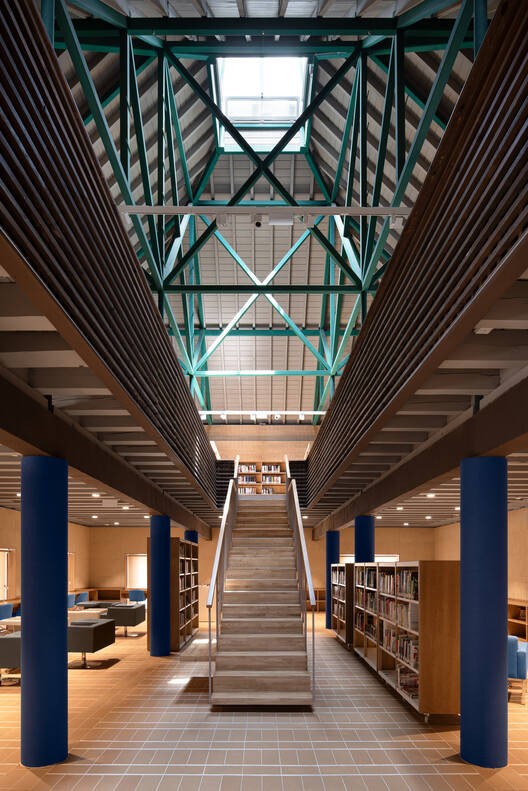 空调装置围绕建筑周边布置,使管道被服务于阅读空间的面板和架子隐藏。
