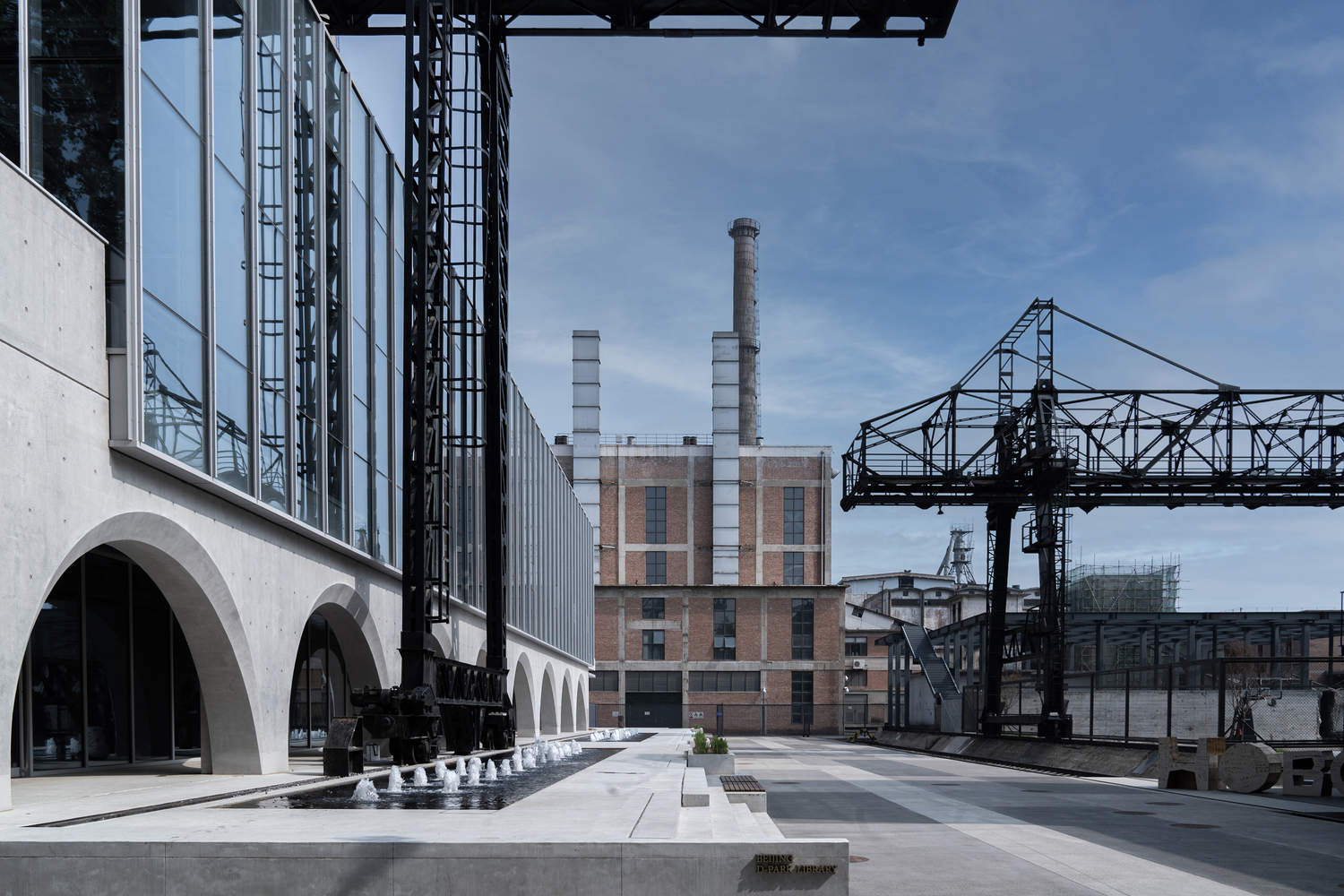 建筑特色鲜明:建筑立面的连续清水混凝土拱门与粗糙工业遗迹形成鲜明对比,保存完好的桥式起重机融入其中,创造出独特形象。玻璃幕墙和天窗将室外工业景观引入室内,形成美妙对话。室内设计开放,三层高透明空间让外部景观最大限度渗透,产生戏剧性效果。