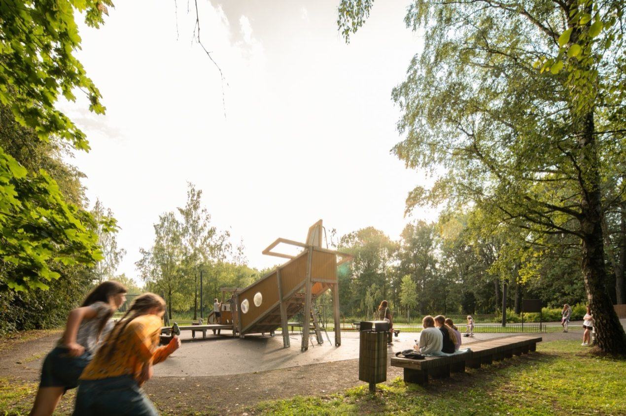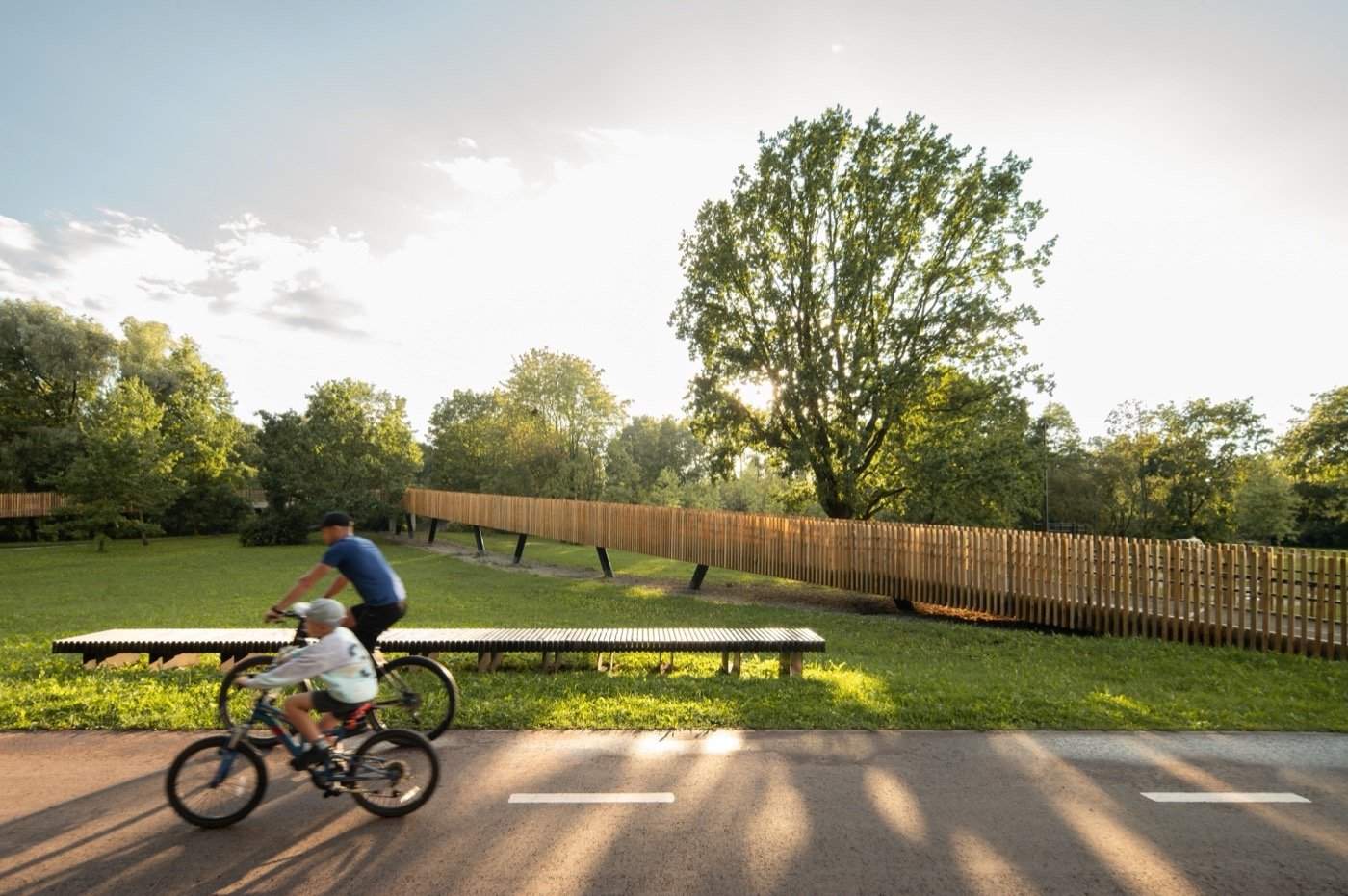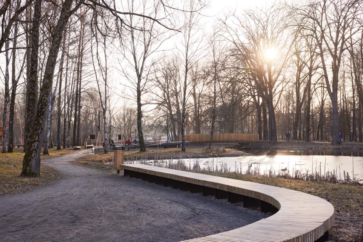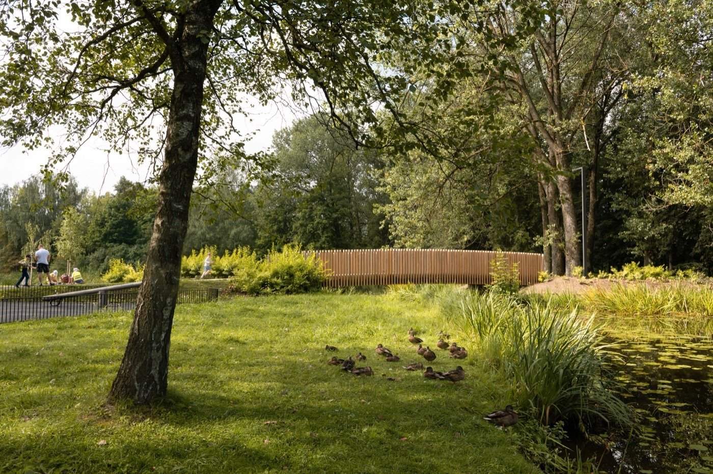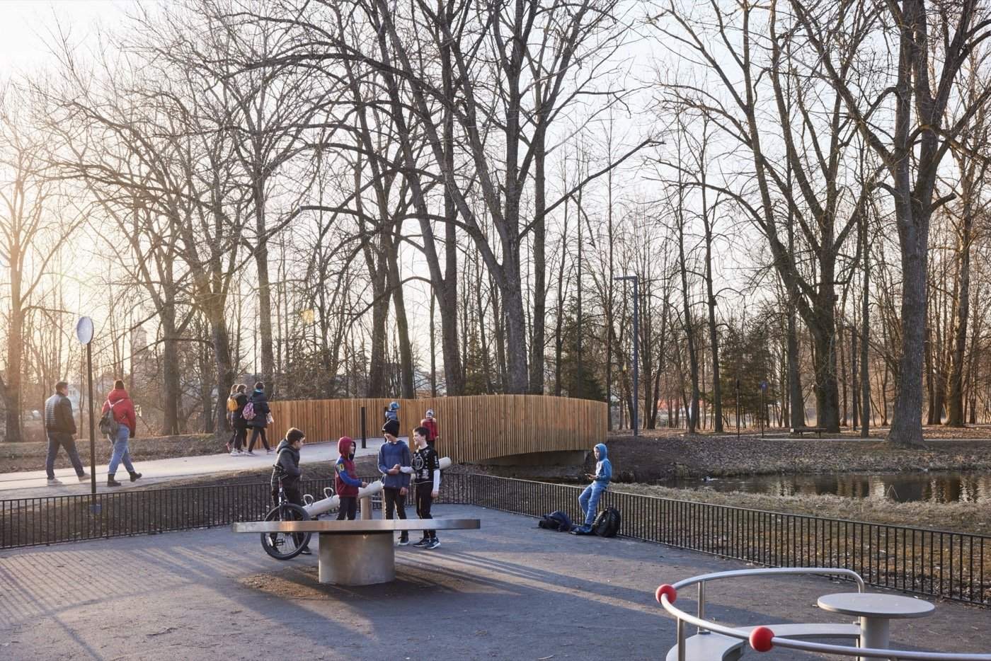 Skaistakalnis Park is the oldest park in Panevėžys, Lithuania. Set in a scenic landscape along the bend of the Nevežis River, the park features hilly, wooded areas, small streams, and ponds. The architectural team “PUPA / Life Over Space” redesigned the park to enhance its beauty and accessibility. New bridges and paths improved access to previously hidden areas, while new activity zones, refreshed greenery, and increased biodiversity made the park more enjoyable for citizens.