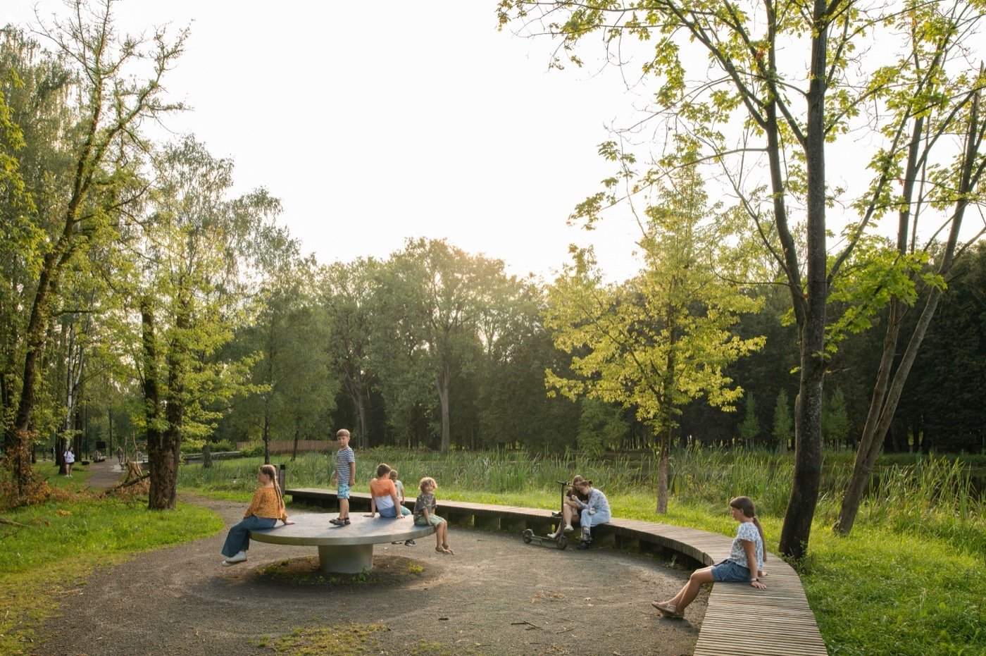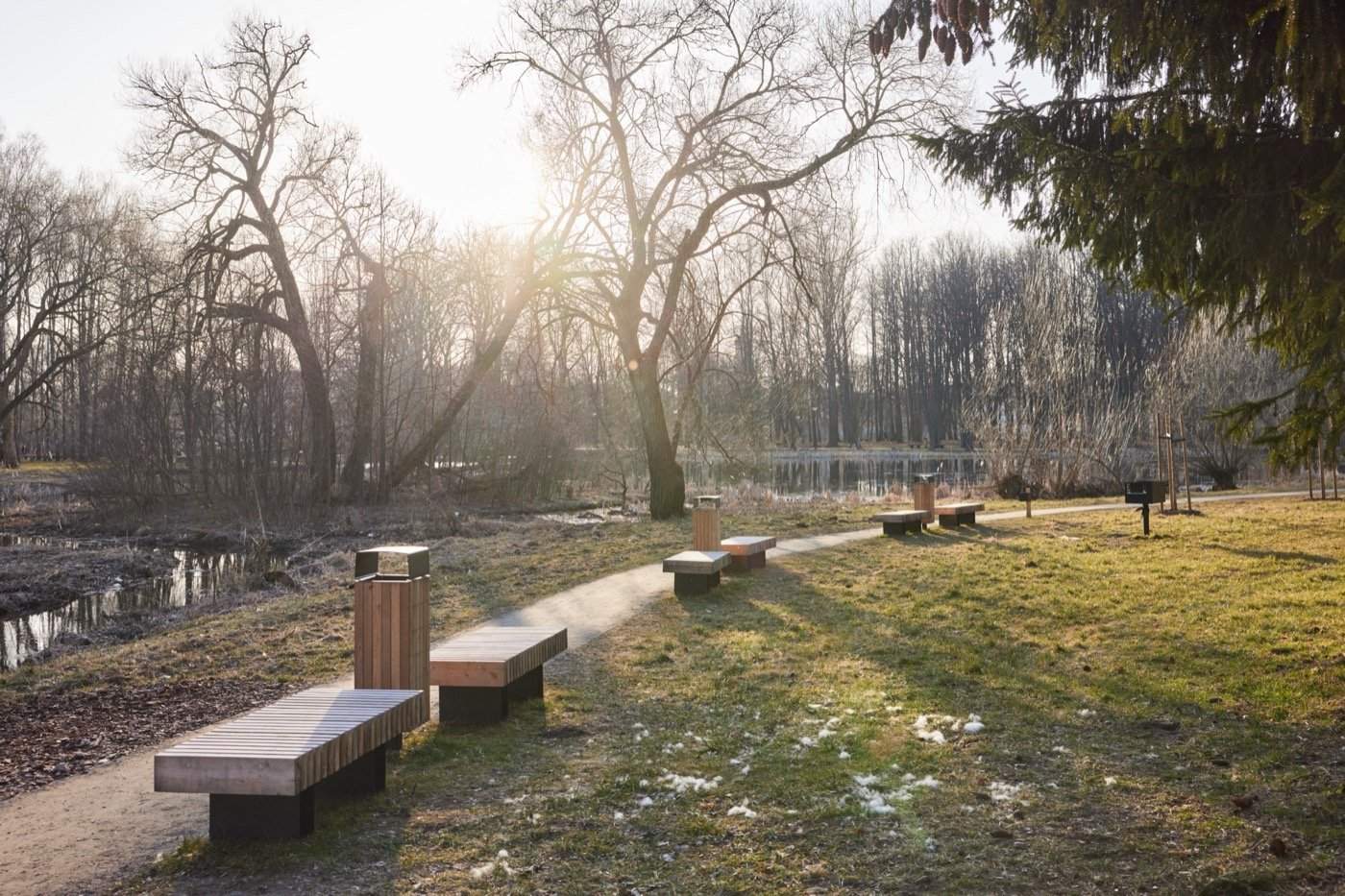 In 2017, “PUPA / Life Over Space” won the competition to redesign the park and its historic homestead. The primary goal was to preserve the park’s natural forested character while creating spaces for entertainment and leisure. Different zones were designed: areas for gatherings and cultural events near the arts center in the historic manor, sports and activity zones by the main bridge, playgrounds, and smaller meeting spaces with benches throughout the park.