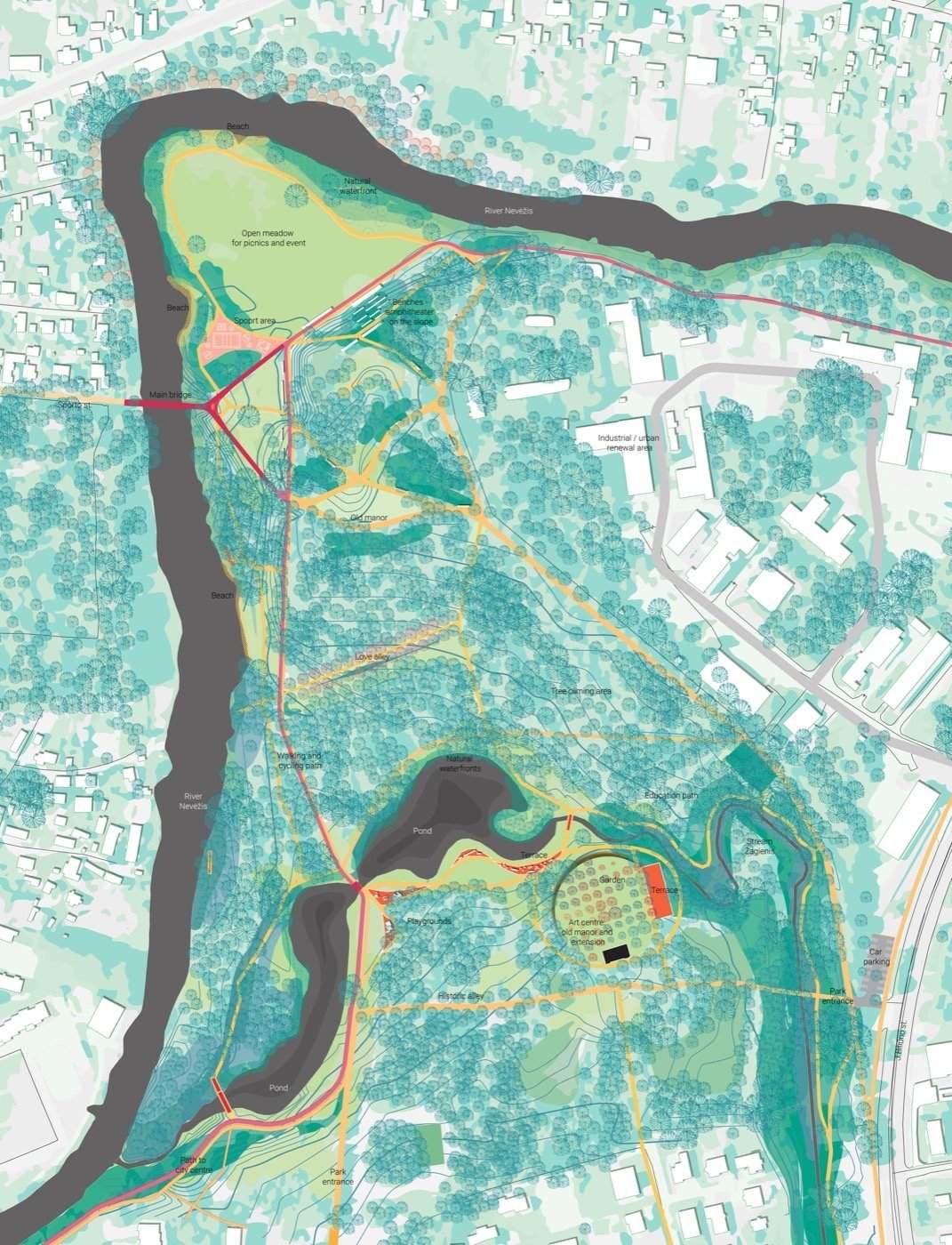 2017年,“PUPA/Life Over Space”赢得了重新设计公园及其历史家园的比赛。主要目标是保护公园的自然森林特征,同时为娱乐和休闲创造空间。设计了不同的区域:历史庄园艺术中心附近的聚会和文化活动区,主桥旁的体育和活动区,游乐场,以及整个公园内带长椅的小型会议空间。