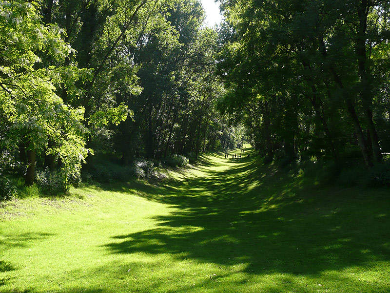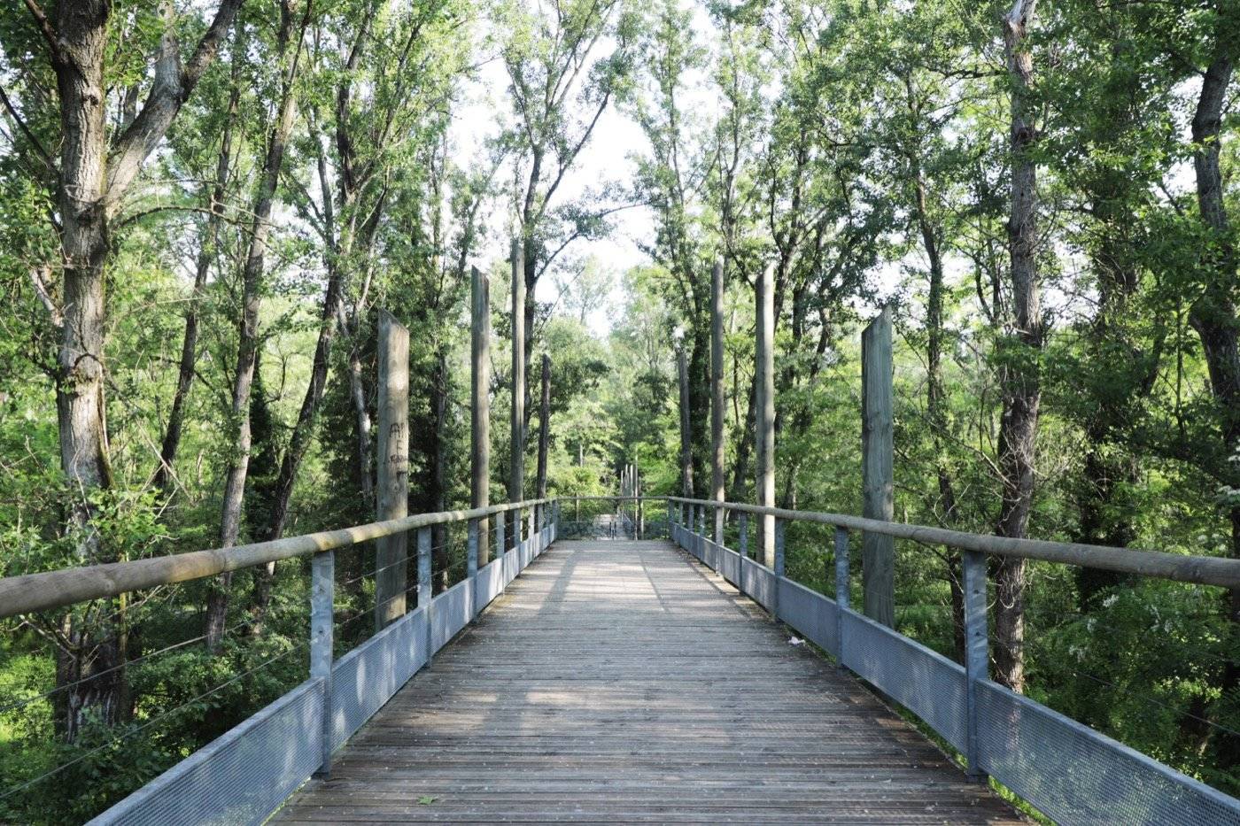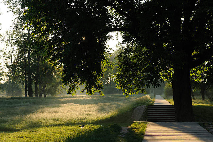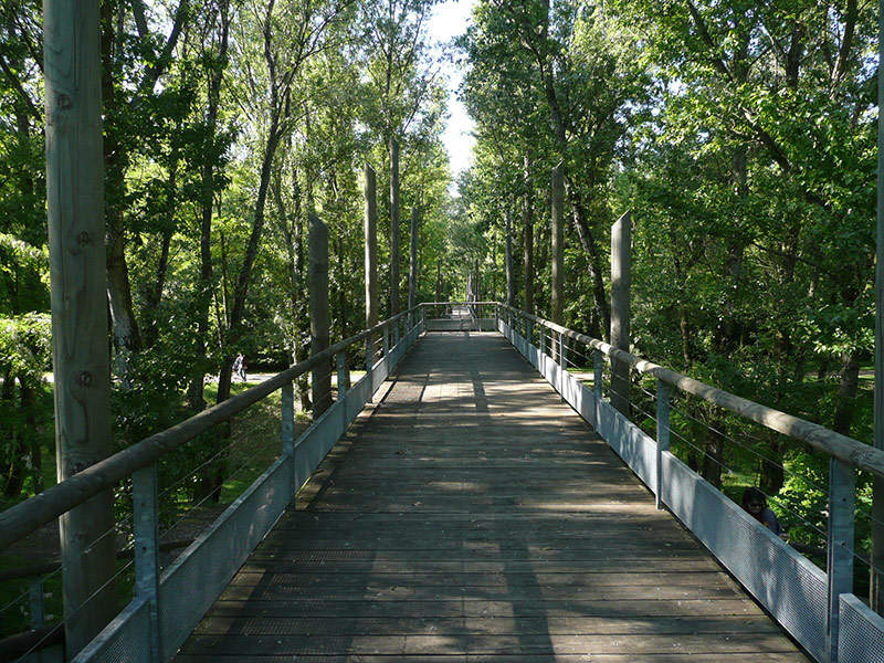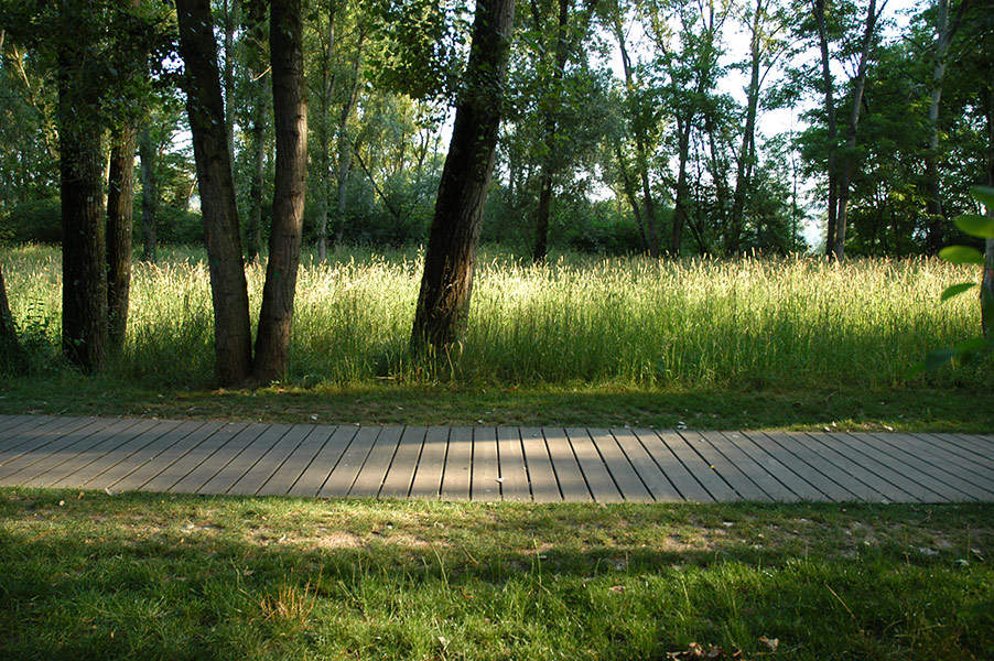 A footbridge transversely links the boulevard to the river, offering a glimpse of the canopy and the trees’ thick foliage. Finally, the circular walk, a perfect circle 1km in circumference, encircles and highlights the importance of the poplar grove and its orchid meadows.