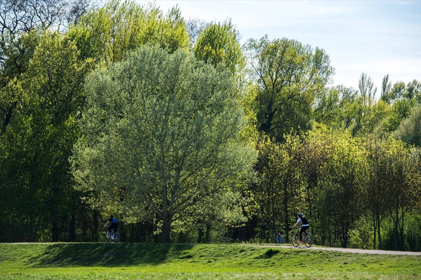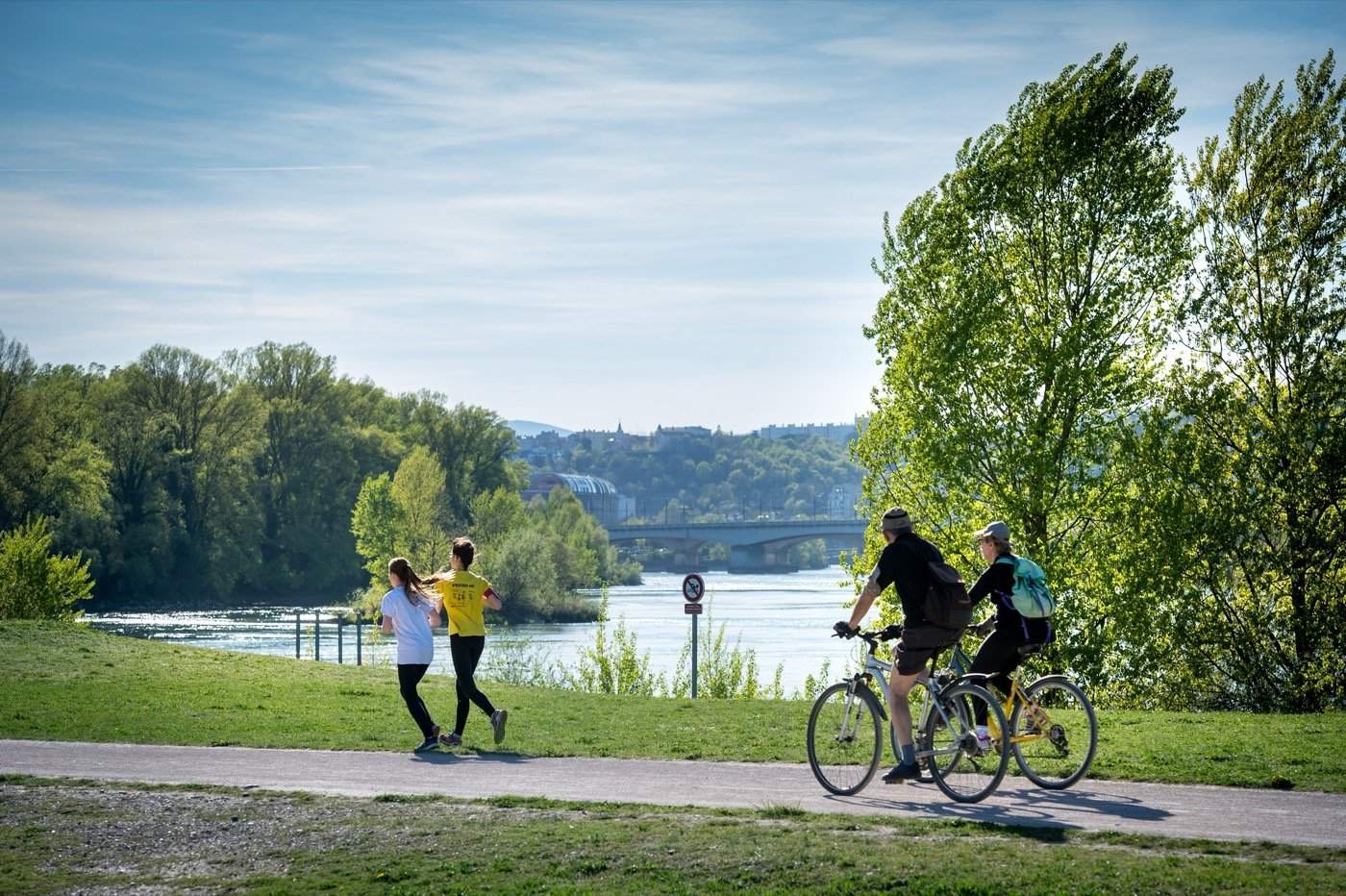 沿着罗讷河的长度,可以通过一条简单的土路看到和接近罗讷河,这条土路有通往河流的窗户。罗纳河沿岸的大都市自行车道位于一条沿着树木的中心路线上。从一条新的、略高于地面的、完全笔直的分级使用线可以看到难以进入的林地中心,这条线连接着公园的两个入口:每100米分级的百米步行道。