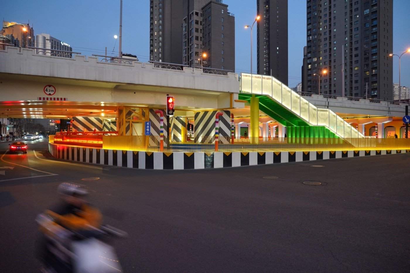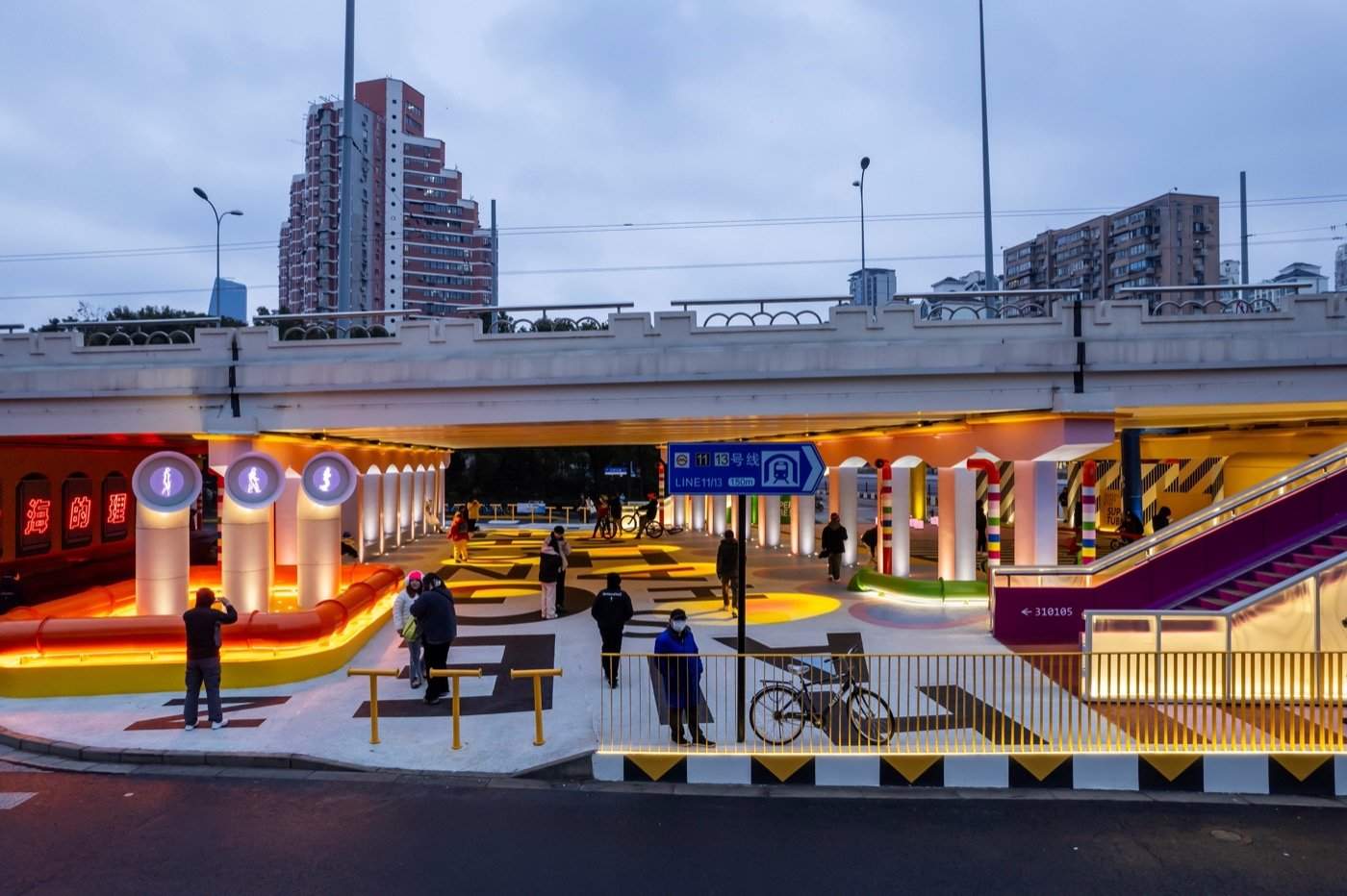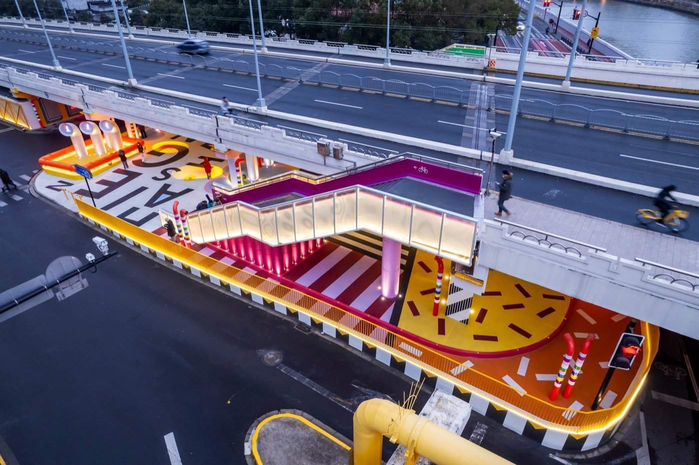 Urban infrastructure construction often has high engineering professionalism and functional specificity, but it fails to directly link with the construction of high-quality urban spaces in daily life. The original site only served as transportation infrastructure with a single function. The transformation design focuses on releasing the spatial ambiguity of infrastructure and constructing “field infrastructure” by overlapping urban public services, in order to promote the construction of high-quality urban public spaces. The renovated Shanghai Super Tube opens its walls, activates the gray space with highly saturated art graffiti, and transforms it into a distinctive gateway showcase space, forming a continuous pedestrian node along the main road of Changning District with Zhongshan Park and 88 Commercial Plaza. The design team cooperated with the owners to plan a series of community commercial services on the site, such as cafes, trendy restaurants, convenience stores, etc., which not only stimulate the economic growth of the surrounding community but also promote community vitality, increase convenience for residents’ daily use, and enhance their sense of happiness. This new form of overlaying public services with urban infrastructure realizes the exploration of a new model for urban infrastructure transformation and renewal.