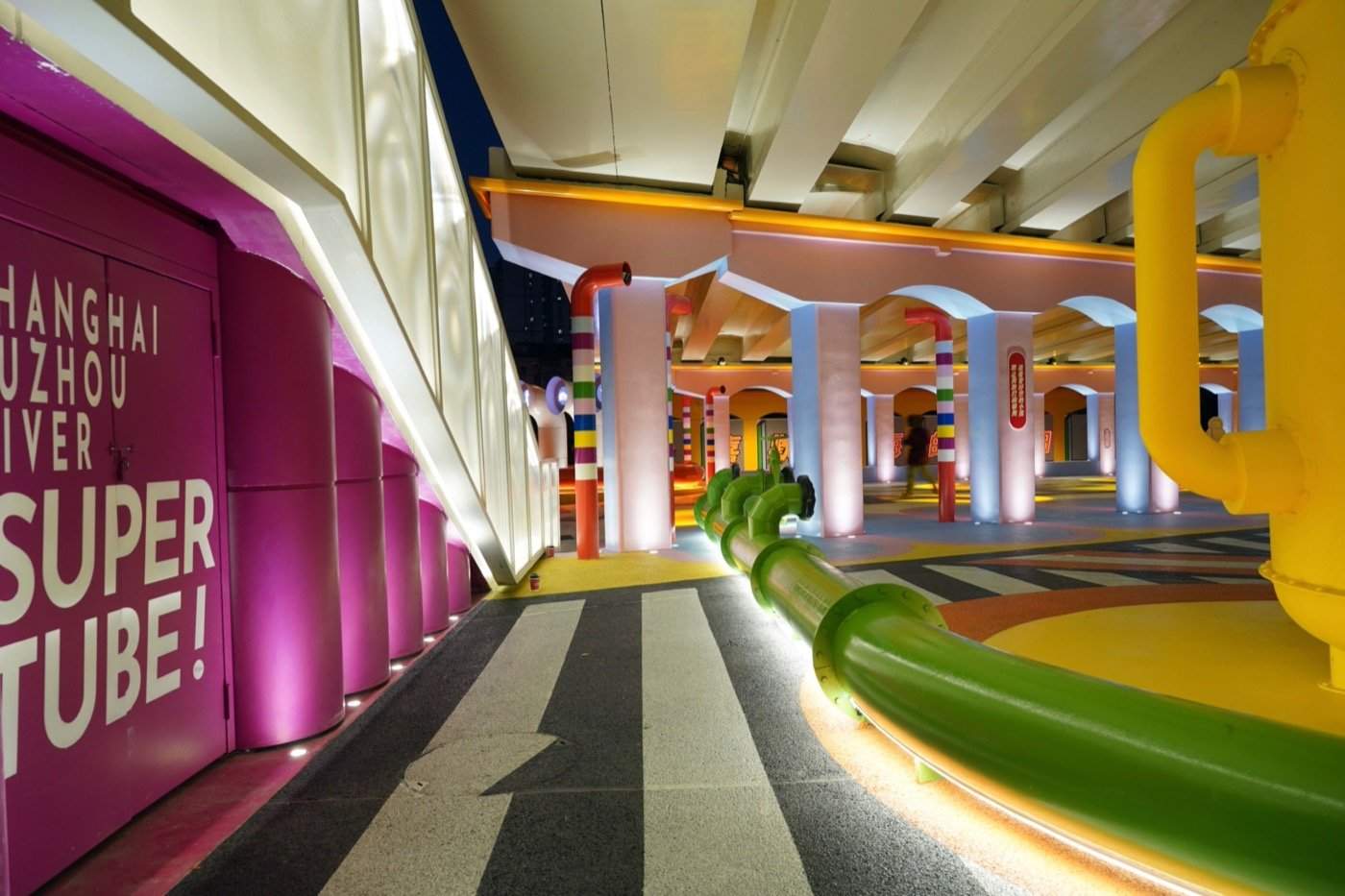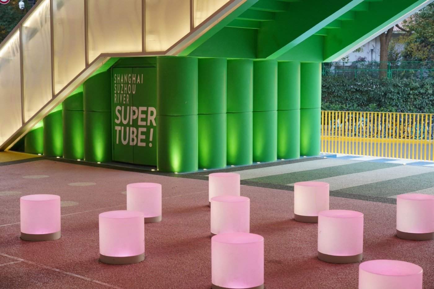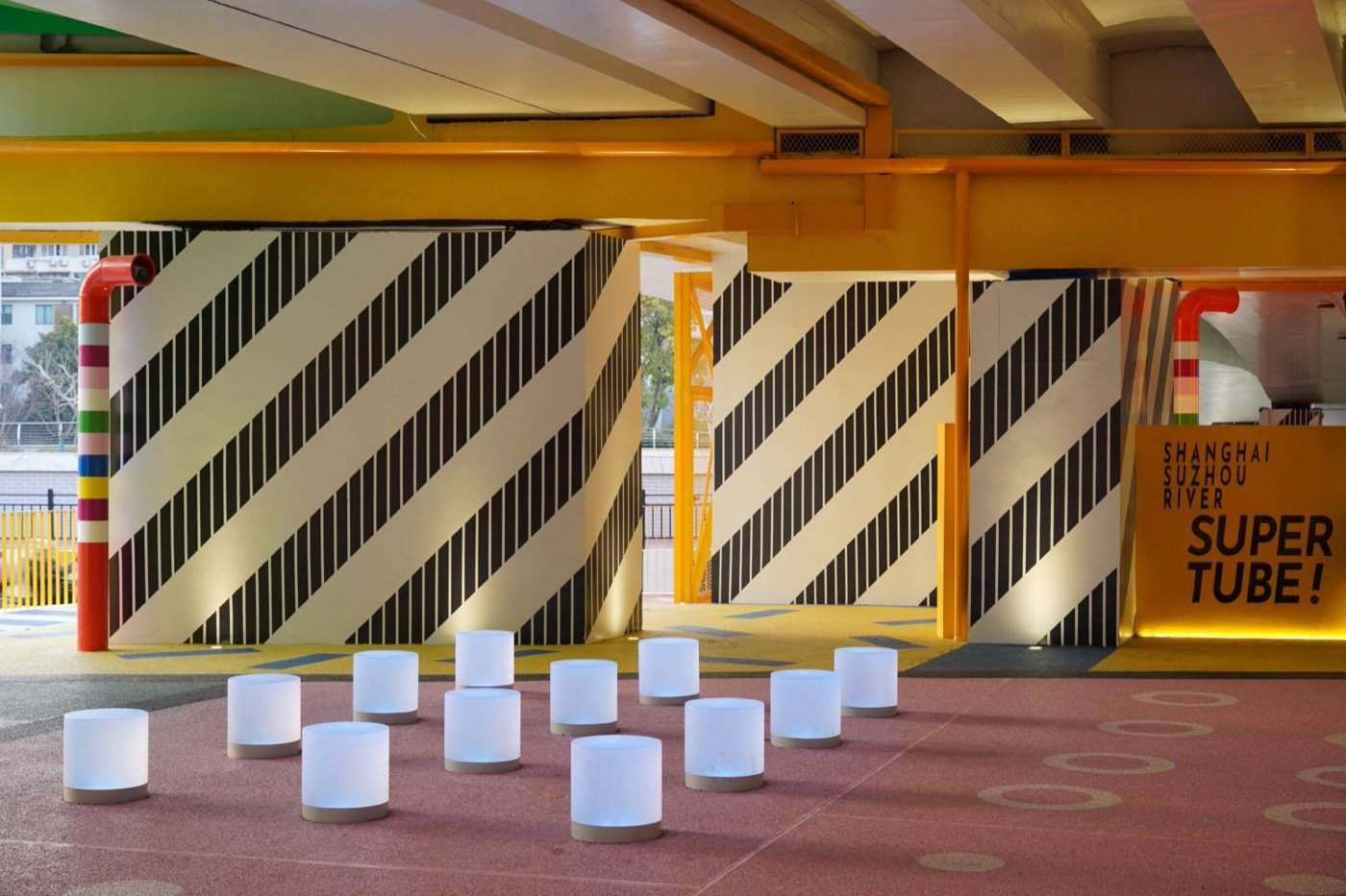 Shanghai Super Tube is a public passage space that we specially transformed under the bridge of Suzhou River. The total renovation area is about 1880 square meters. Although it just opened on New Year’s Day 2024, it has already become one of the must-visit places for young people. The project is a passage space under the bridge, located at the intersection of two main roads on the east side of Changning District in downtown Shanghai, underneath the main traffic bridge Cao Yang. It is the first infrastructure design node of the leisure and cultural belt under the Suzhou River in Changning District and also serves as the gateway to the three major administrative districts of Changning, Jing’an, and Putuo in Shanghai.