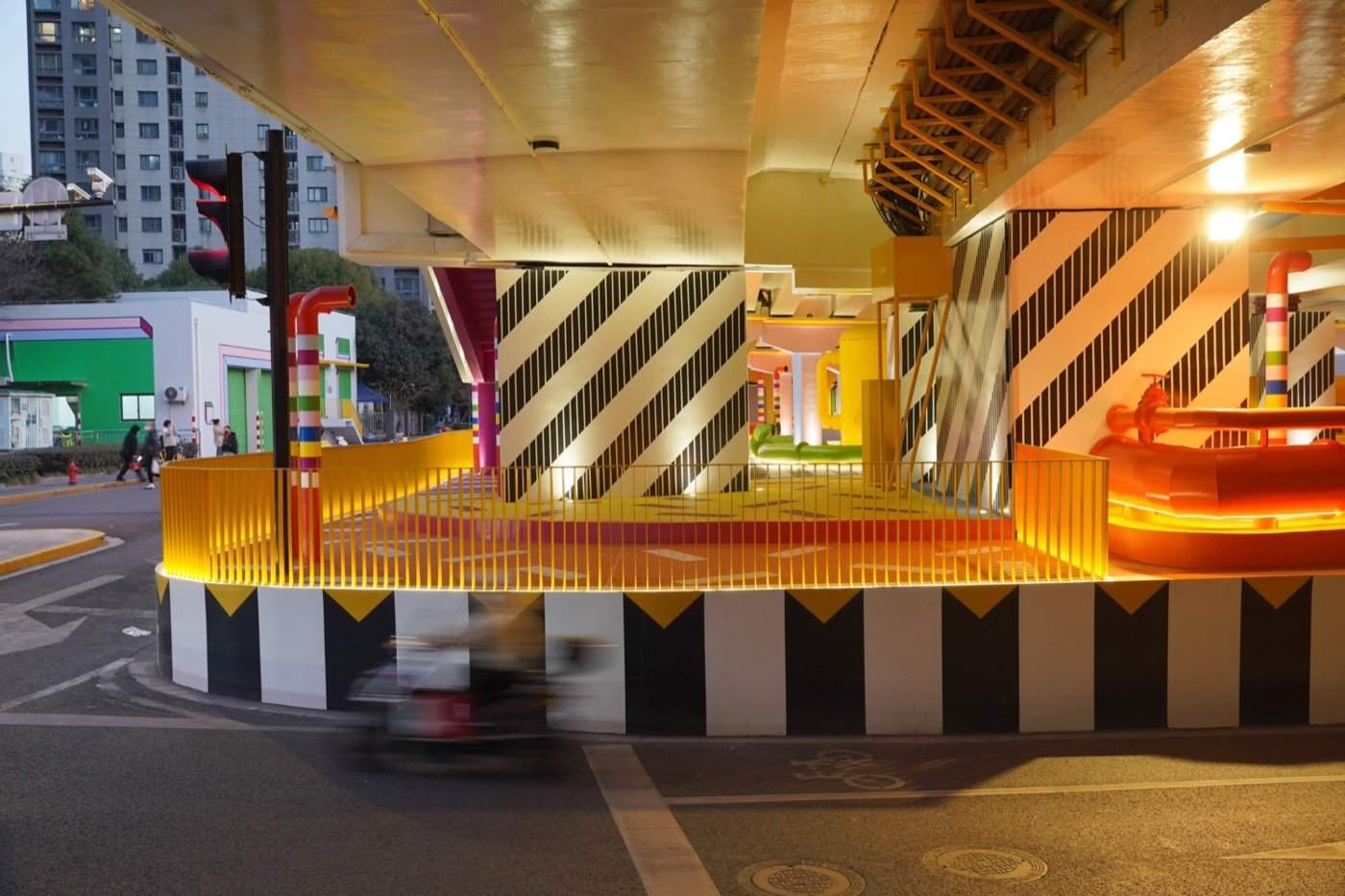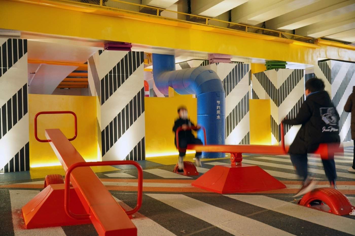 With the installation of colors and graffiti, elements such as pipes, seats, and fences embellish, fill, and redivide the space, and the combination with dazzling lights increases the interactivity and recognizability of the space, while also transforming the dark space under the bridge into a public stage. Young people perform various forms of improvisation here, such as street dance, street bands, skateboarding, and theater. The distinctive site brings unlimited inspiration to young people and provides them with a free and versatile space to showcase themselves, unleash themselves, and sweat their youth, creating a positive cycle of increasing popularity and vitality, and becoming a fertile ground for nurturing art.