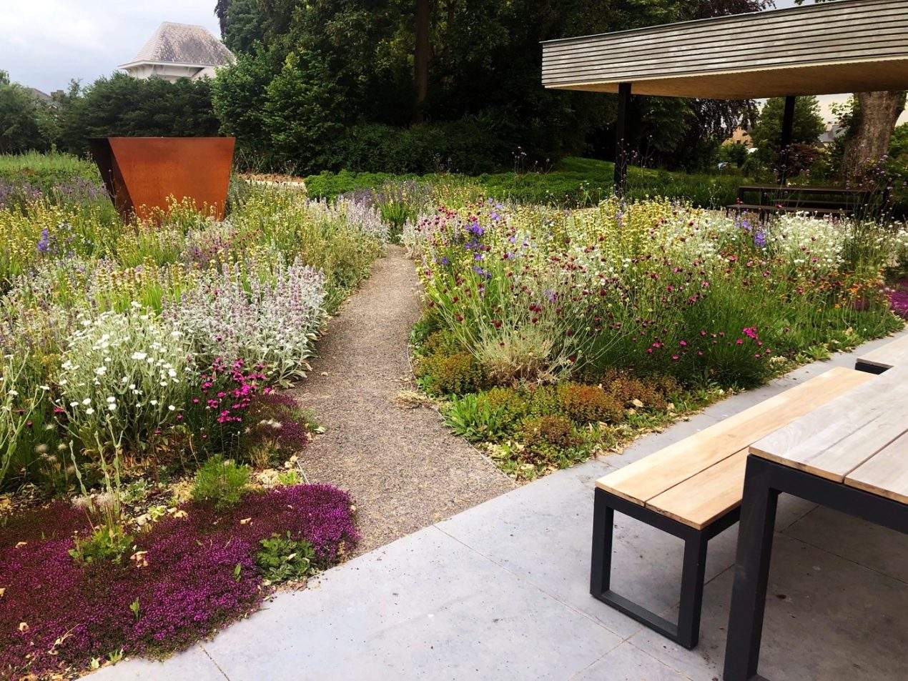 The plants themselves are chosen on the basis of their drought resistance and their appearance, as mentioned. The selection is made as wide as possible in order to maximise the groundcovering aspect. Of course, this is also reflected in the great diversity in terms of both shape and colour.