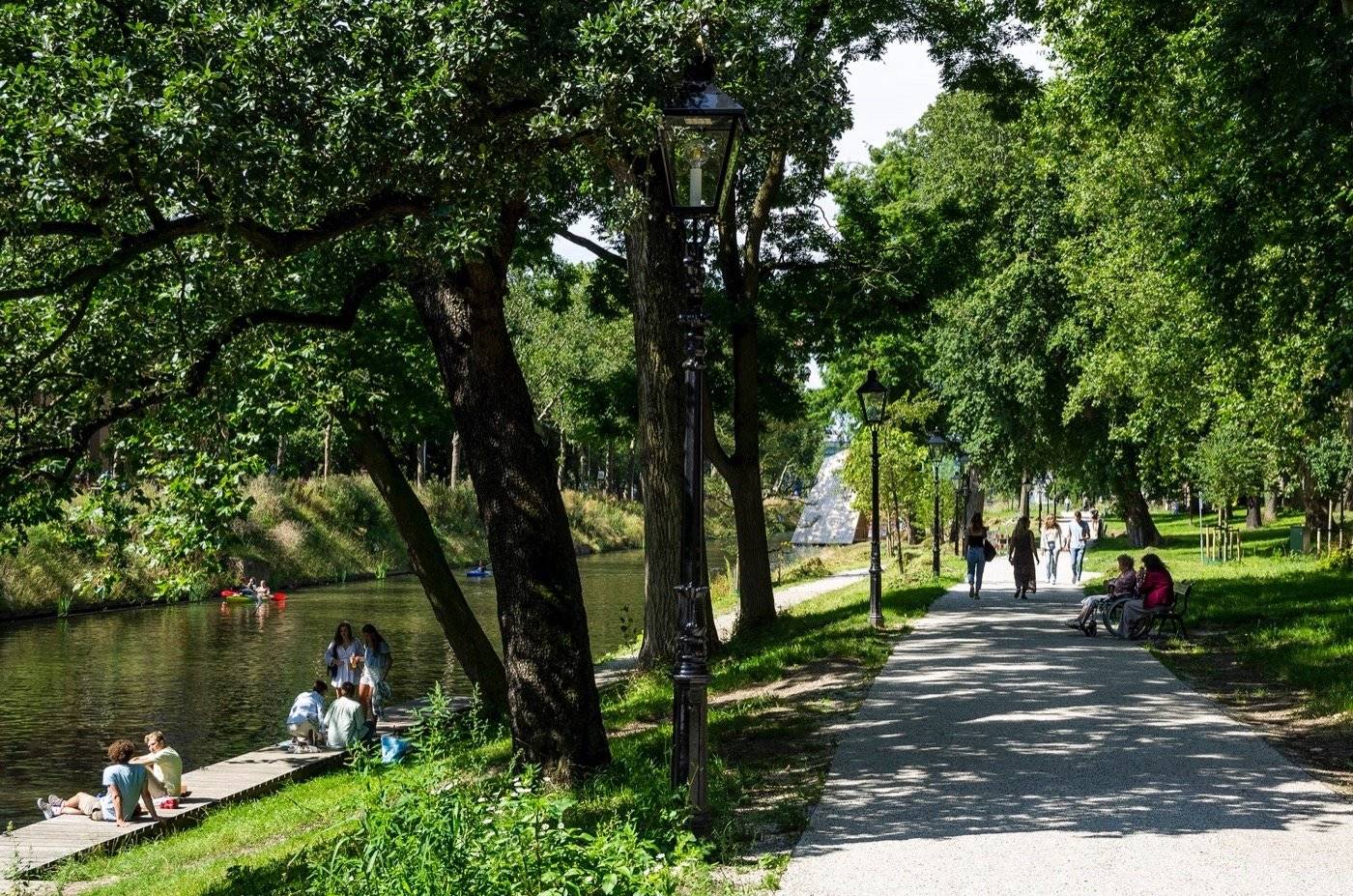The restoration process involved a collaborative effort between the municipality, the residents, and the landscape architects from OKRA. The resulting design revived the waterway while creating a park along the shore, inspired by Zocher’s style with contemporary ecological considerations.