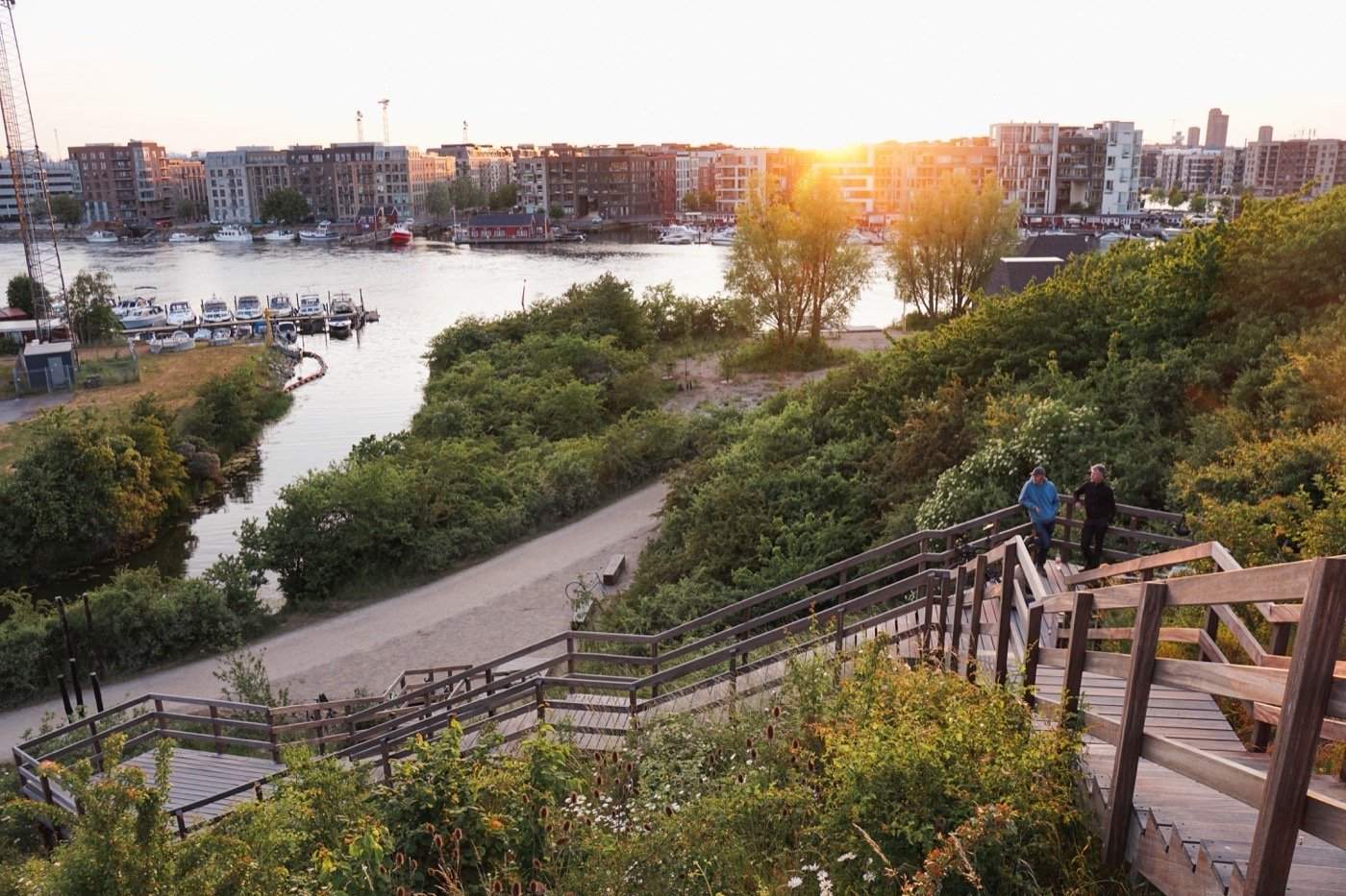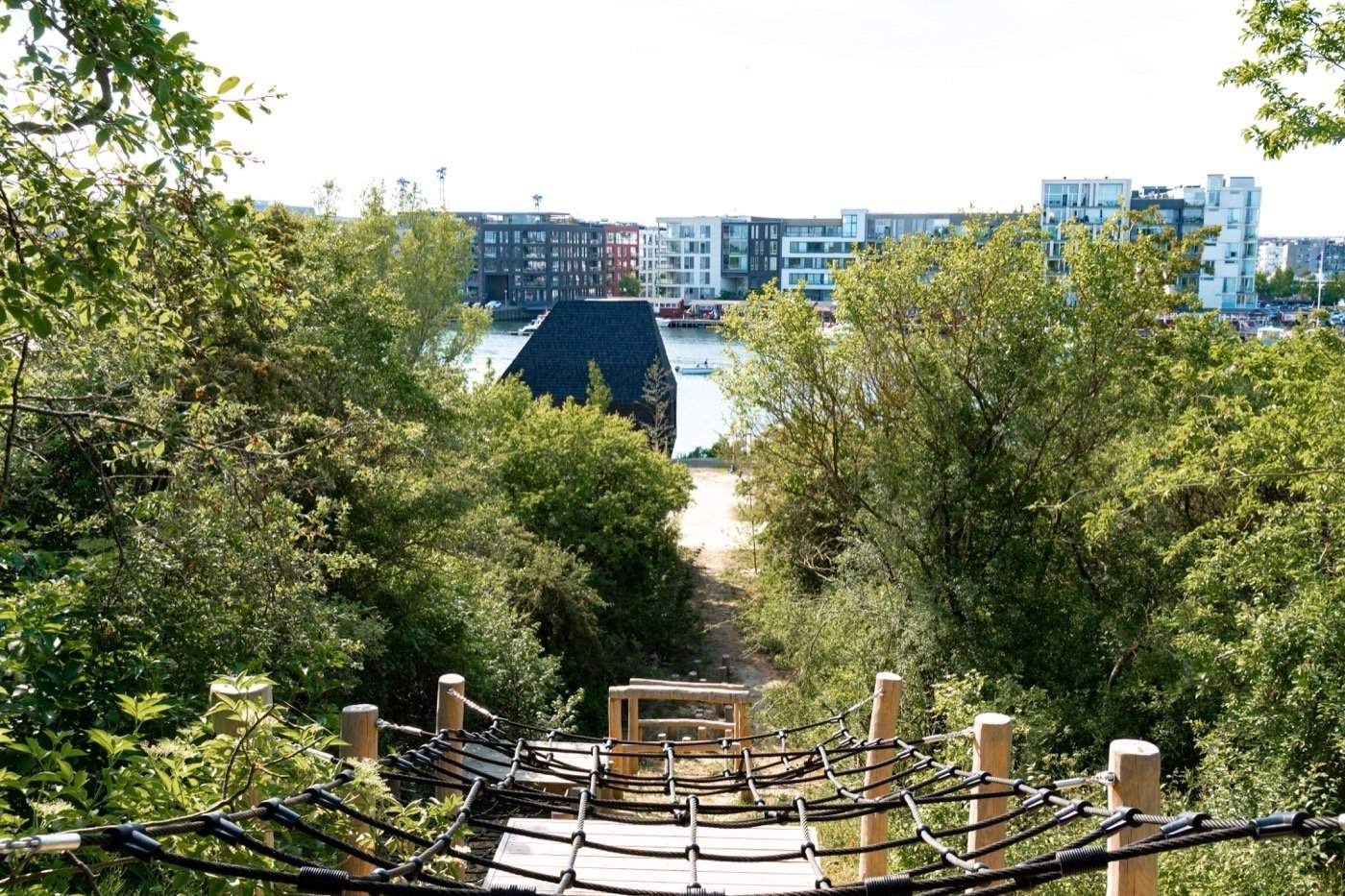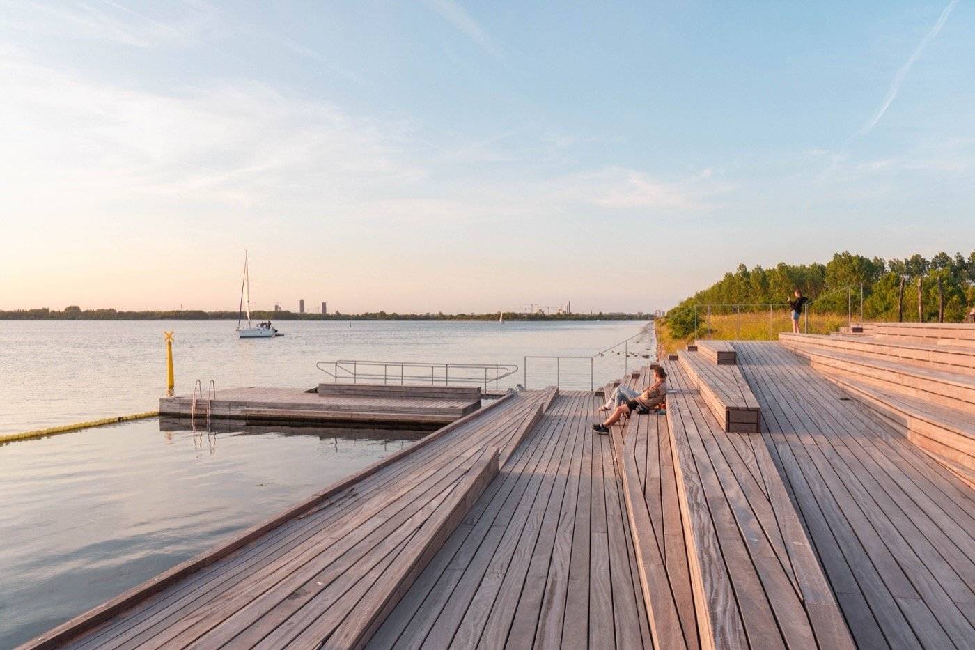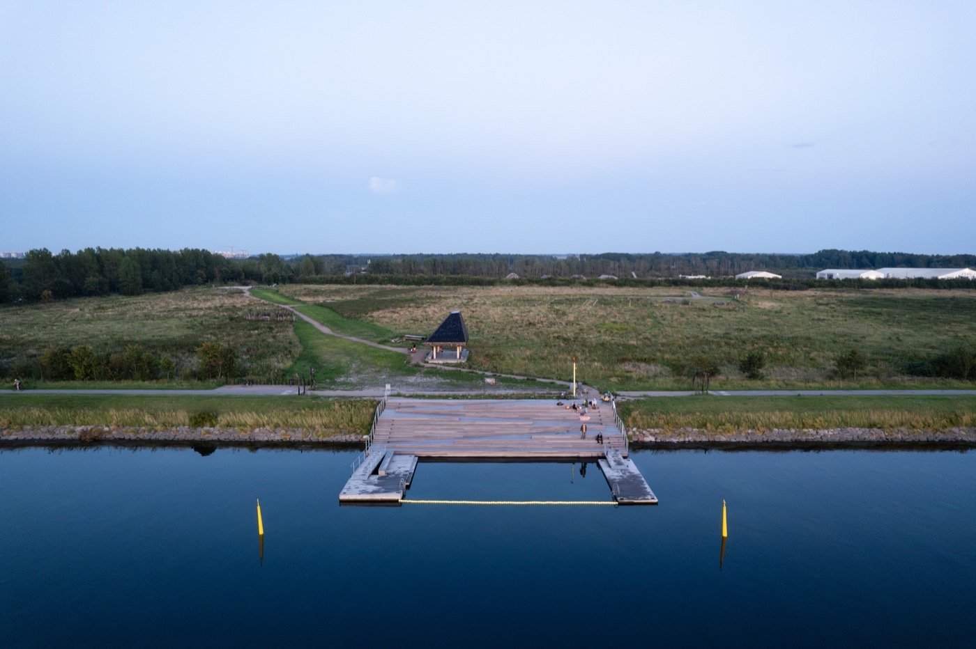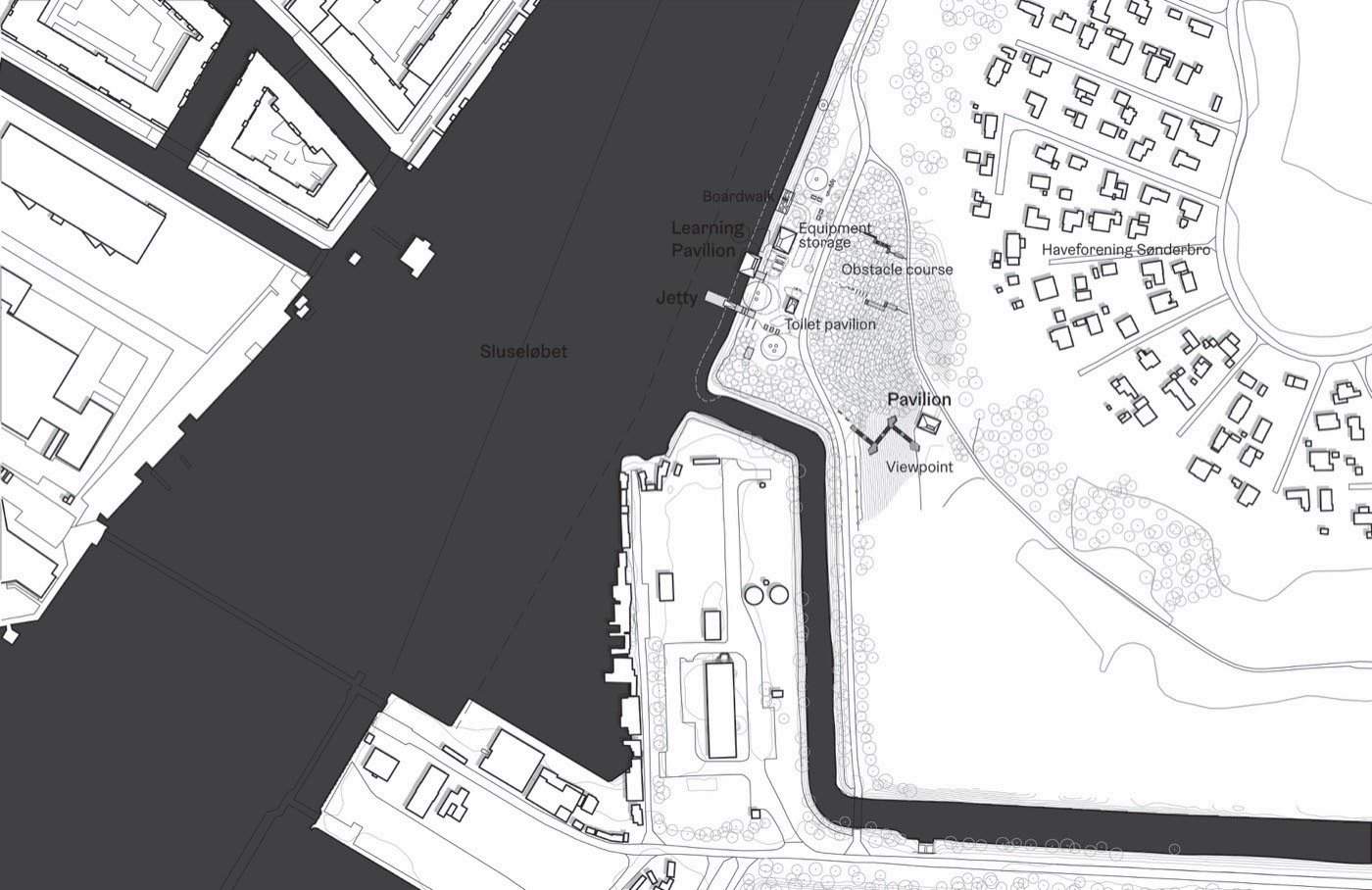 Havneslusen是Amager自然公园的一个独特补充,位于城市的尖端,周围环绕着有机开发的游艇社区和“Nokken”花园社区。在这里,水面上的浮动平台为皮划艇和小船提供了通道,邀请游客探索港口。这个空间是一个多功能的聚会场所,提供了与公园或城市中任何其他地方不同的东西。无论是用于野餐、教育活动,还是只是一个休息的地方,有盖区域都是一个灵活的环境,专为各种用途而设计。嵌入Havneslusen后面地形的楼梯通往令人惊叹的景色,提供了一个宁静的休息场所,从山顶可以欣赏到全景。