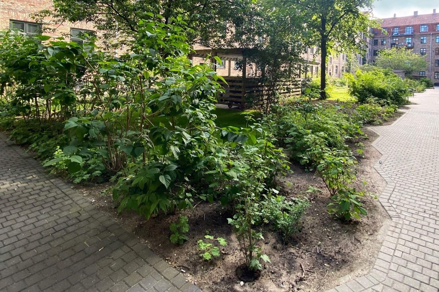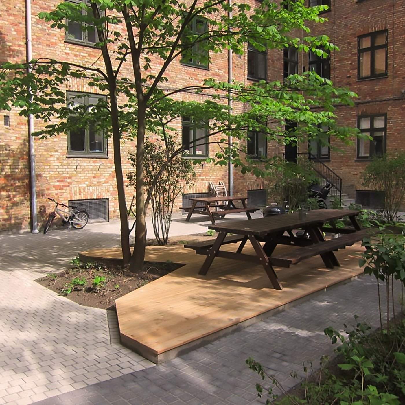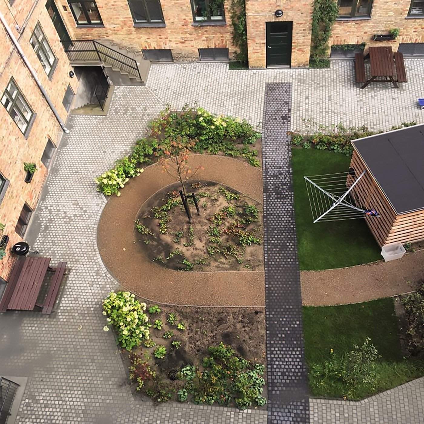 The project was completed in 2016, and photos taken in the late summer of 2024 show that it continues to function optimally, both as a climate-resilient courtyard and as a green oasis in the heart of Copenhagen.