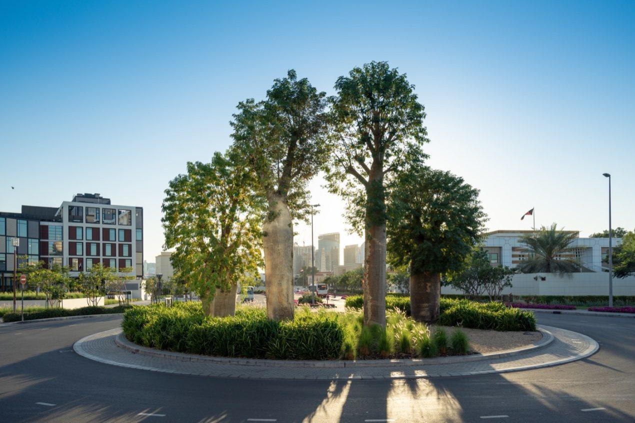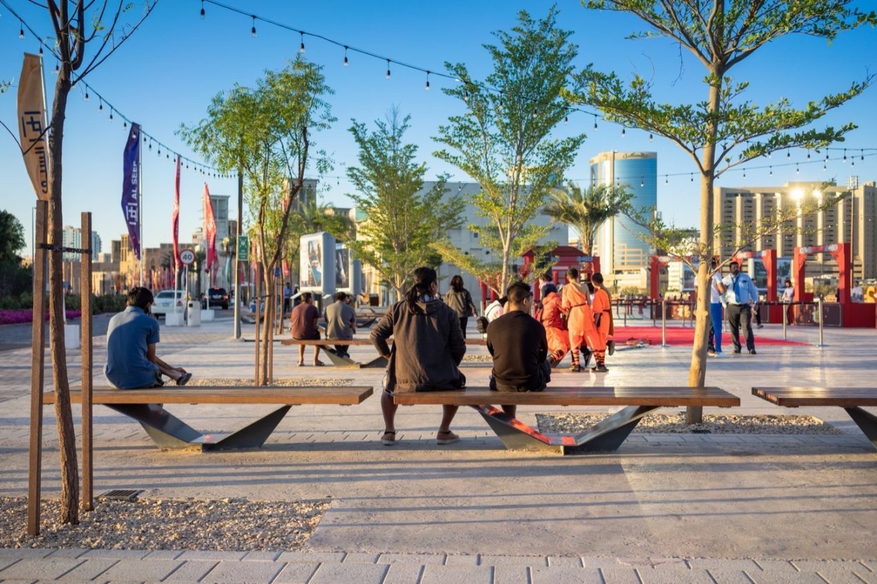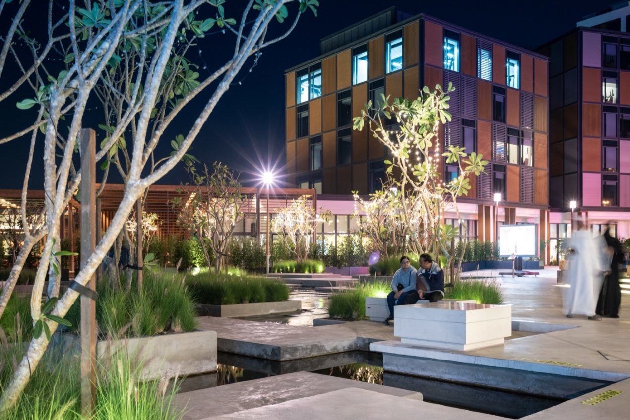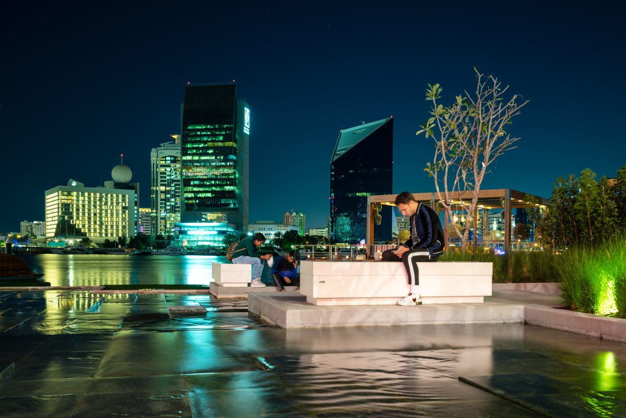 A series of pavilions that fully open onto the Creekside promenade in the contemporary phase blur the lines between internal and external spaces so that a stage is created for active restaurant and hospitality spill-out. A terraced cascading landscape of modern materials and lines takes inspiration from Dubai’s embrace of new urban growth patterns which is expressed further through the use of simple angular benches, sculptures, raised planters, modern paving, and defined linear lighting strips.