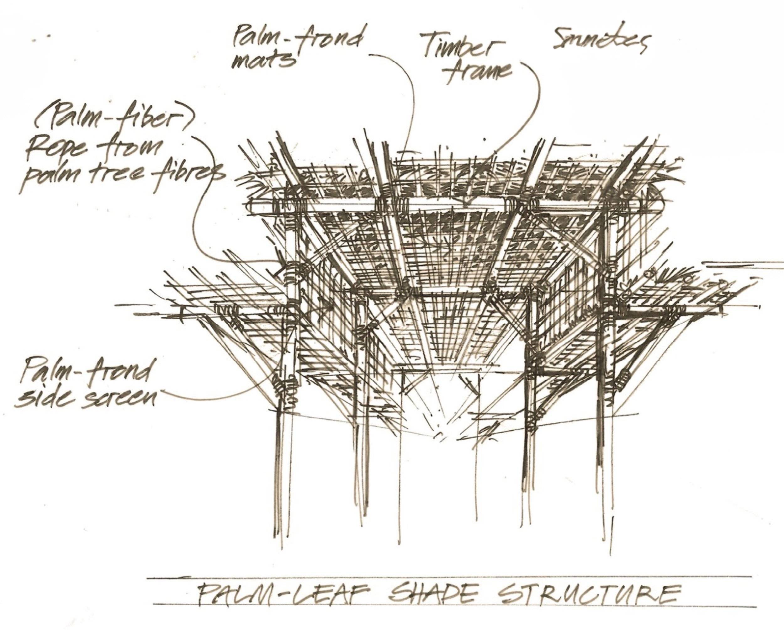 Cracknell研究了摄影文件,设计了一个当代而真实的设计传统白话的代表,因为它在经过一层时间的侵蚀后出现了。作为该项目遗产复兴阶段娱乐体验的一部分,该团队放置了复制的文物,设计了具有不完美饰面的混凝土材料和结构元素,集成了乡村照明,并用当地棕榈叶(称为barasti)制作了阴影区域,以展示当地的工艺。