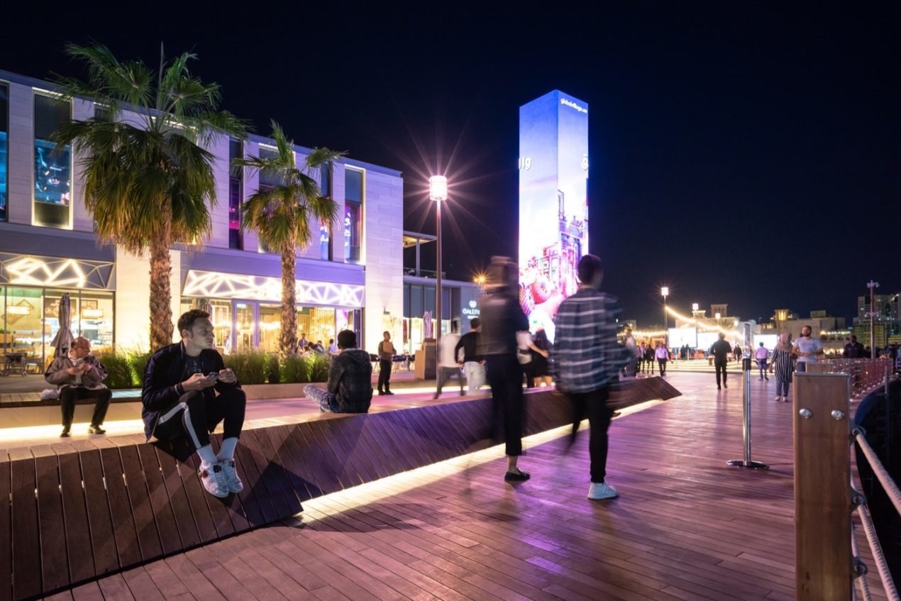 Following partial demolition in the 1980’s and a successful campaign to save the remaining heritage buildings, developers remodelled the site to accommodate F&B, retail, and hospitality with an open space events plaza, and marina promenade. The public realm is split into two distinct themes drawing inspiration on one side from the local architecture which includes the 1890’s Al Bastakiya, with arcades, souk, and winding narrow street typologies, and on the other from Dubai’s famously fast rise to world class city status.
