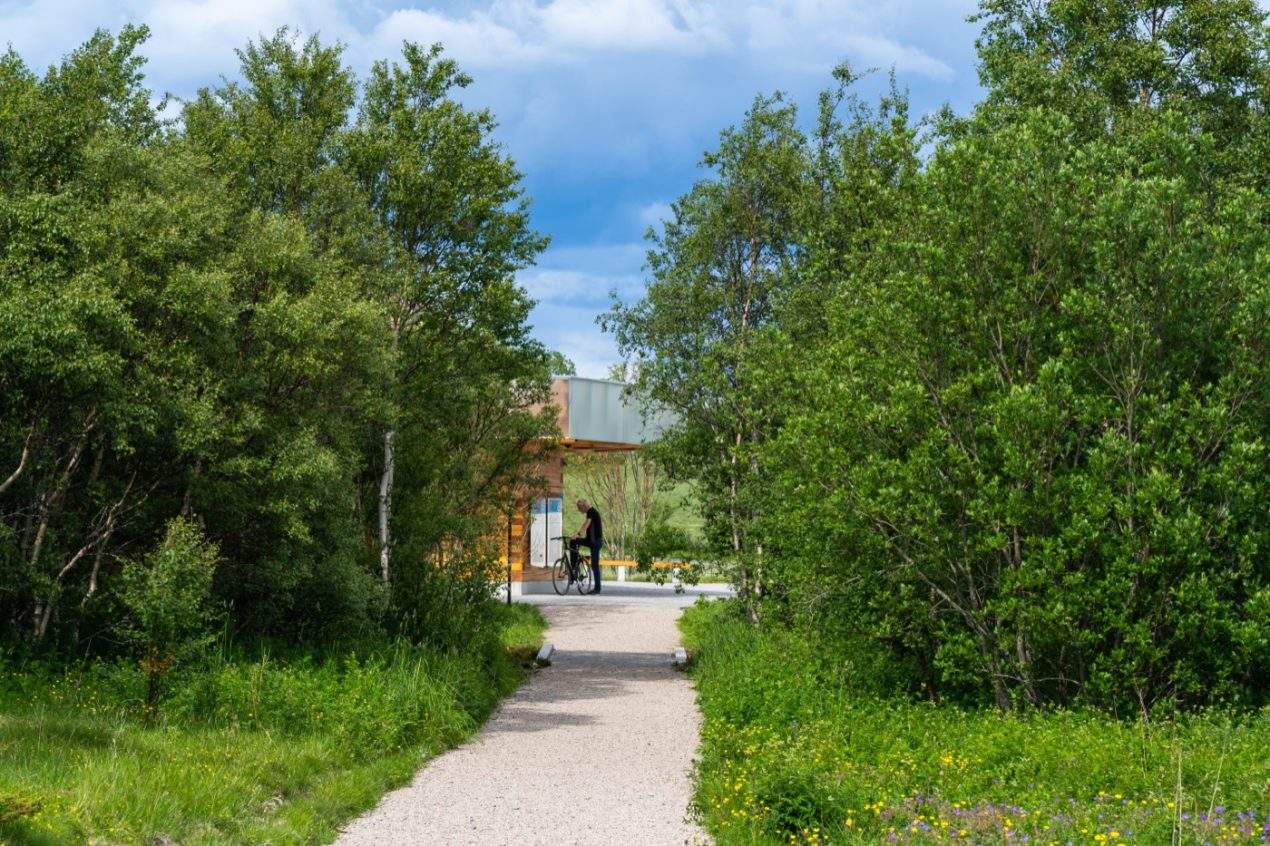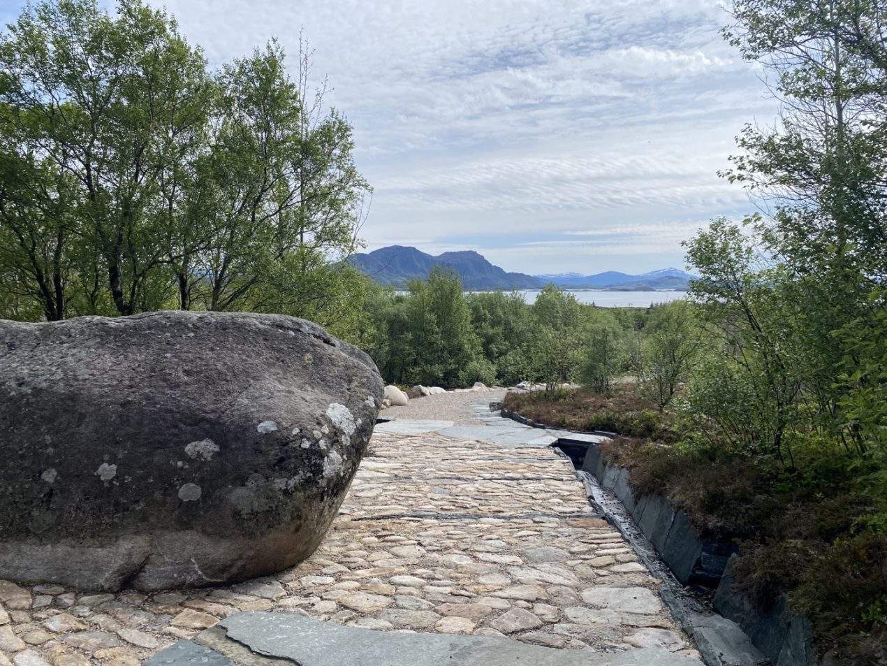 In close collaboration with the architects from Atelier Oslo, a facilitated gathering place is now established, marking the beginning of the path. Including a building with public toilets and exhibition venue, an outdoor plaza with seating areas integrated into the surrounding greenery, and a new logistic area for traffic with new roads, parking, and room for up till 4 tourist buses at the same time.