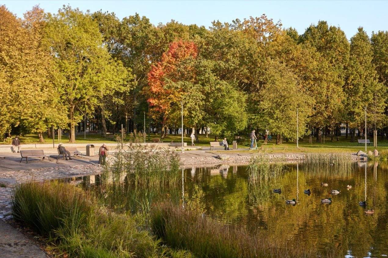 Oak Grove Park酒店位于立陶宛克莱佩达一个现代主义住宅区的中心。该公园于2021年恢复活力,已成为当地人喜爱的景点。它提供了两个不同的区域:一个是活动休闲区,有运动区、健身设施和游乐场,另一个是安静放松区,人们可以在树下阅读、聚集在小空间或在池塘边喂鸟。这些区域由一条环形通道连接,非常适合步行、骑自行车或滑旱冰。